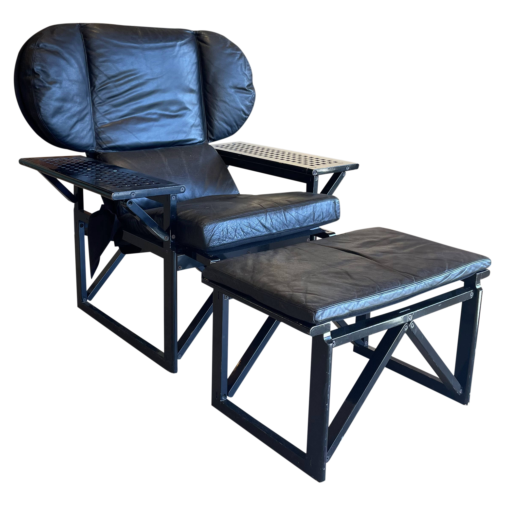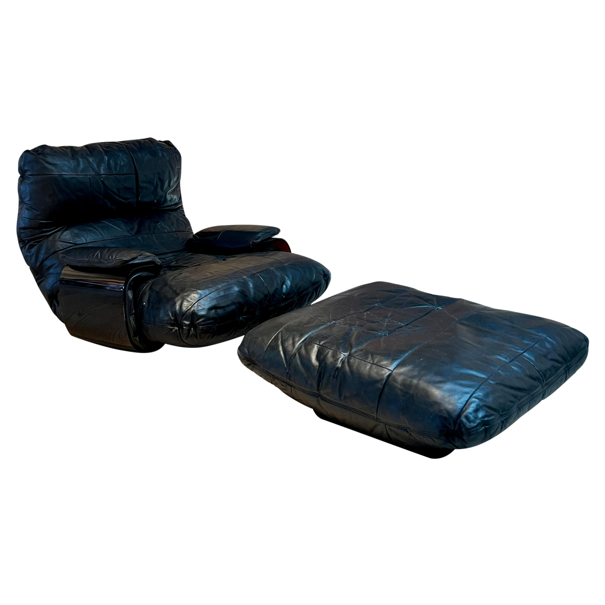 Black Leather Lounge Chair + Ottoman by Marc Berthier