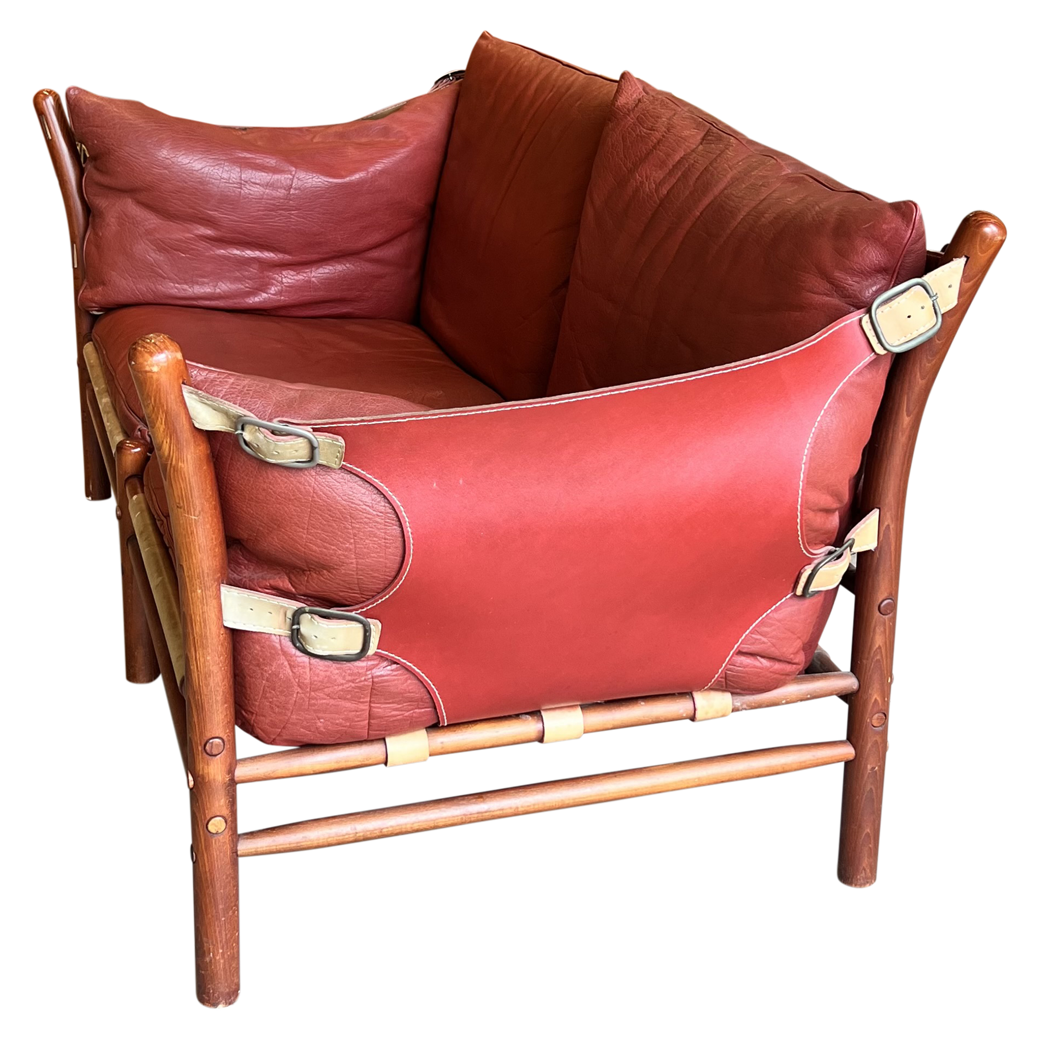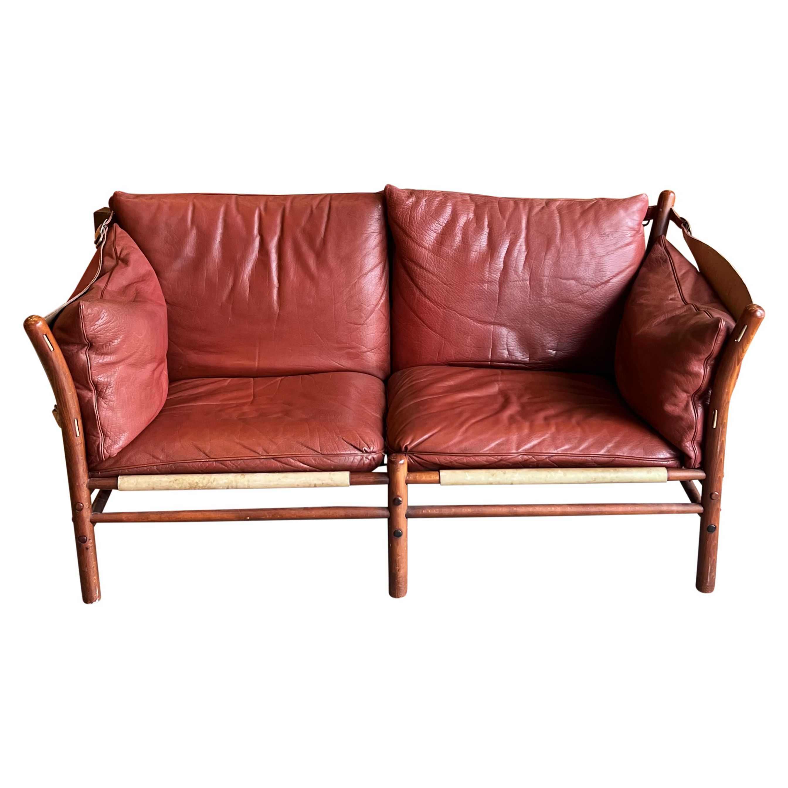 Red Leather Loveseat by Arne Norell