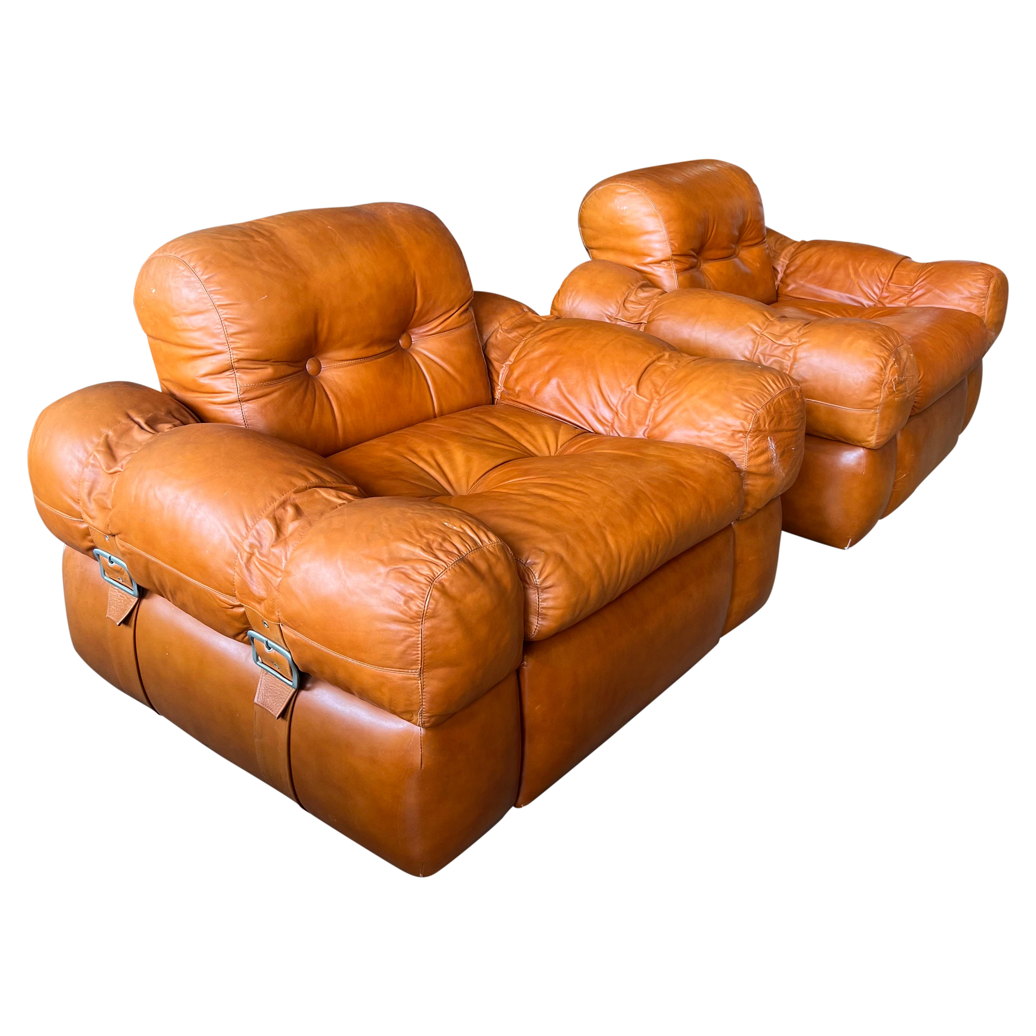 Pair of Tufted Leather Chairs with Buckles
