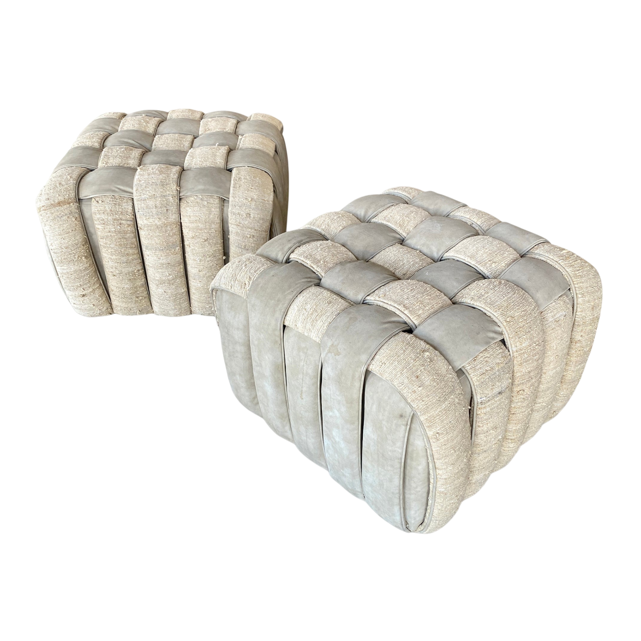 Pair of Leather Woven Ottomans