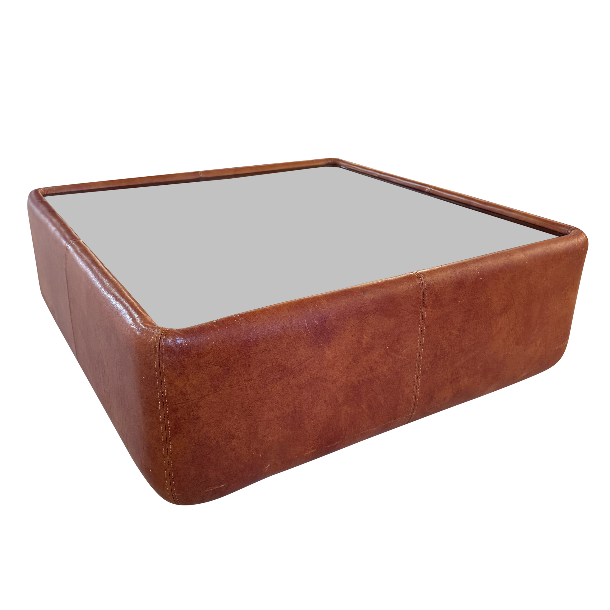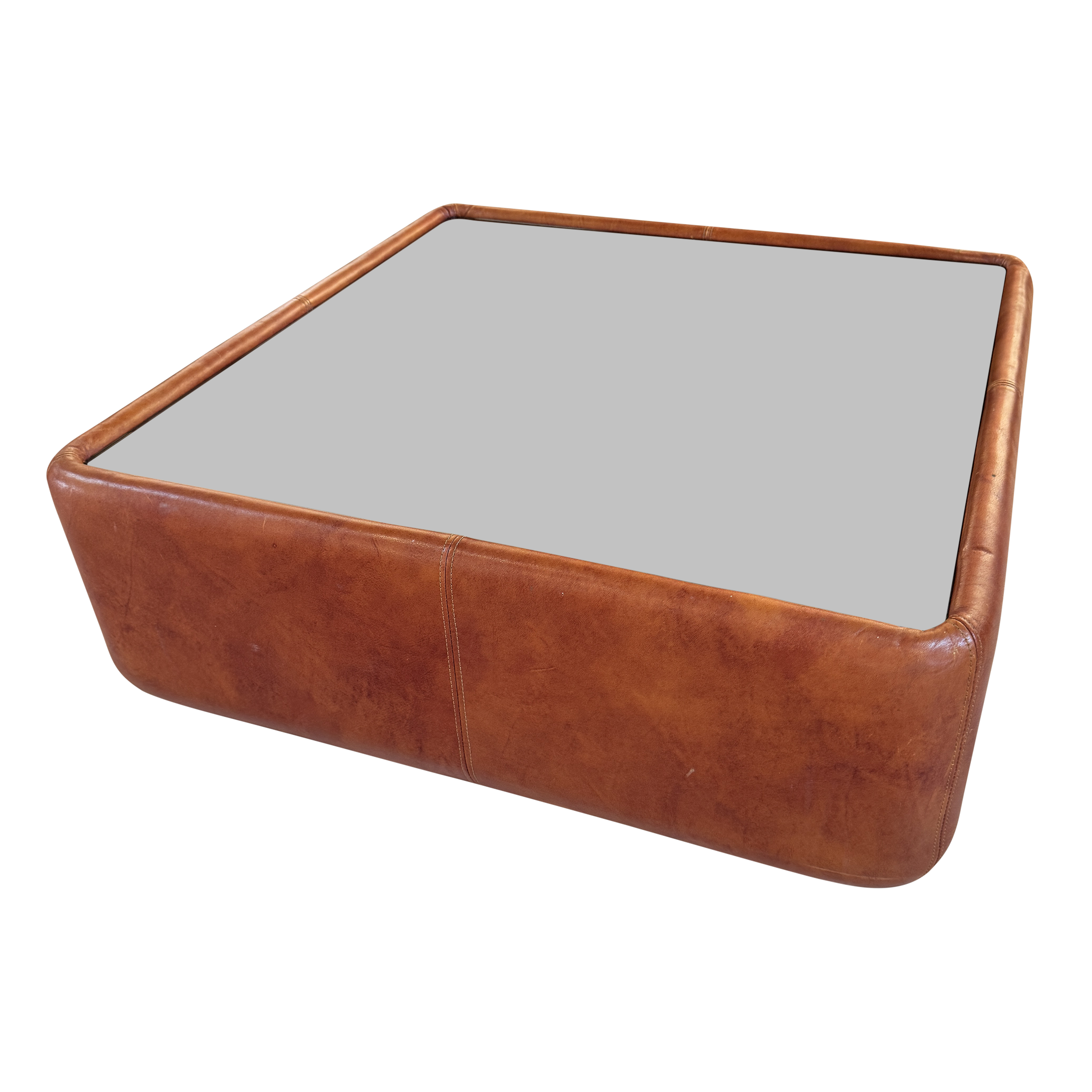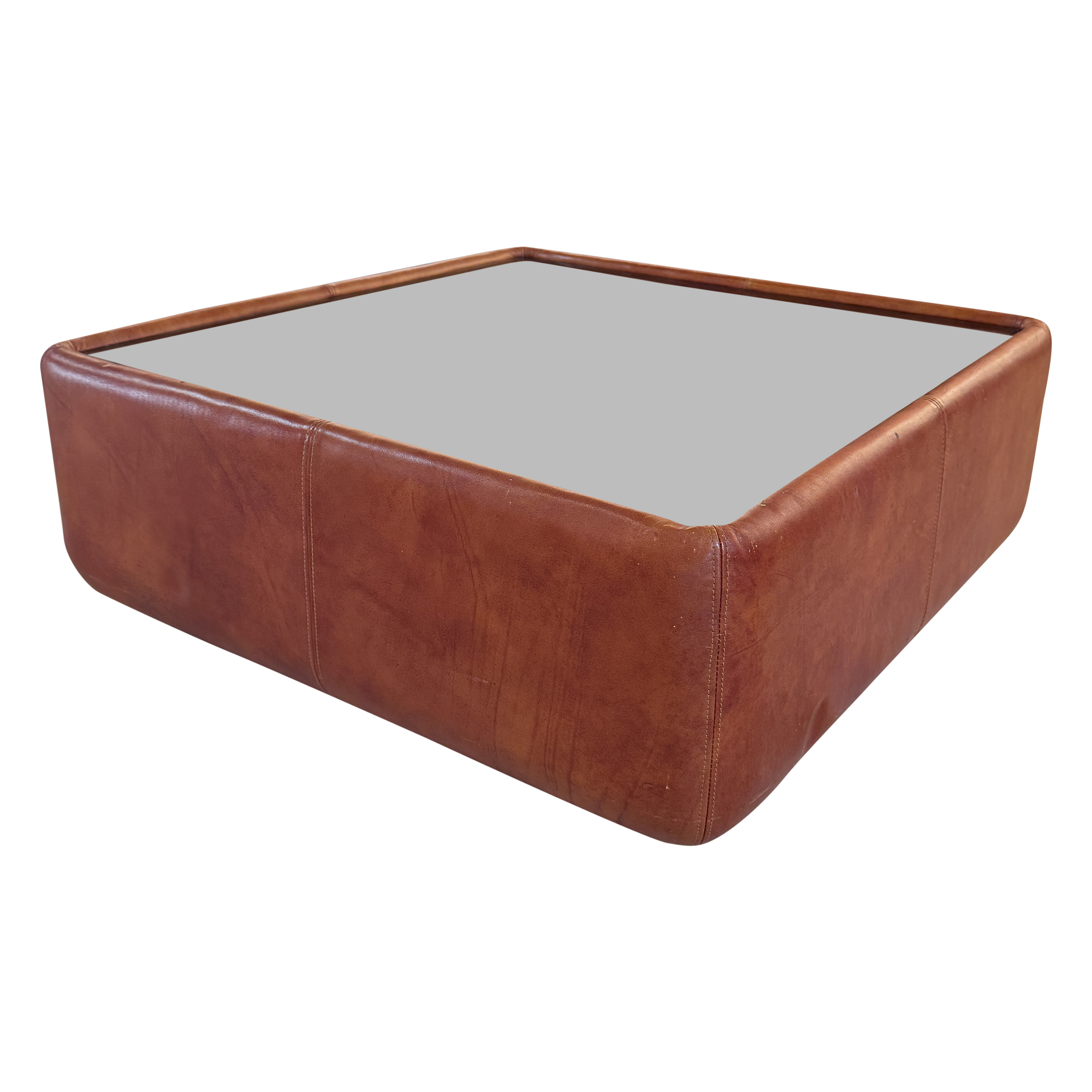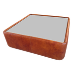 Cognac Leather Coffee Table with Smoked Glass Top