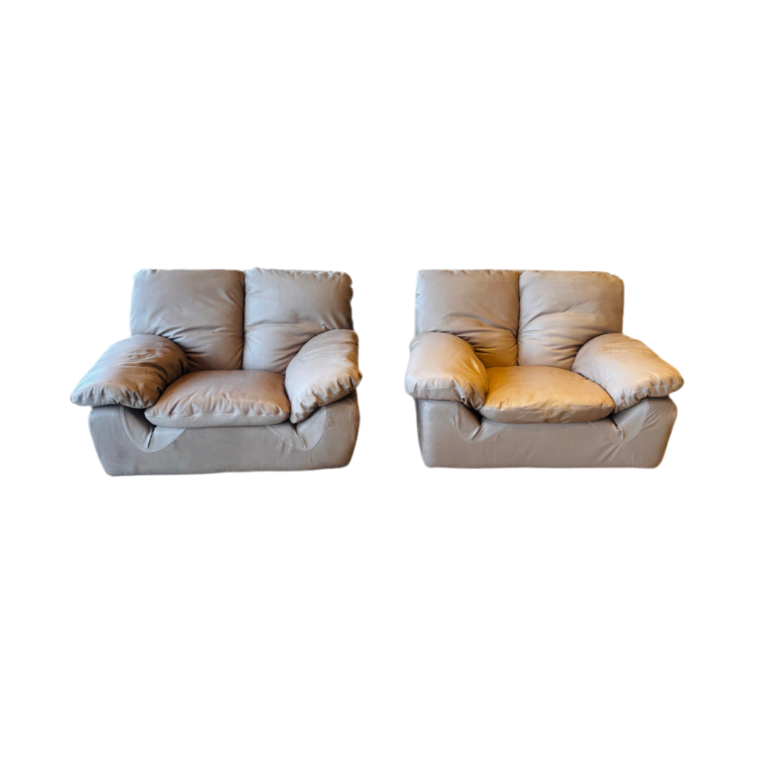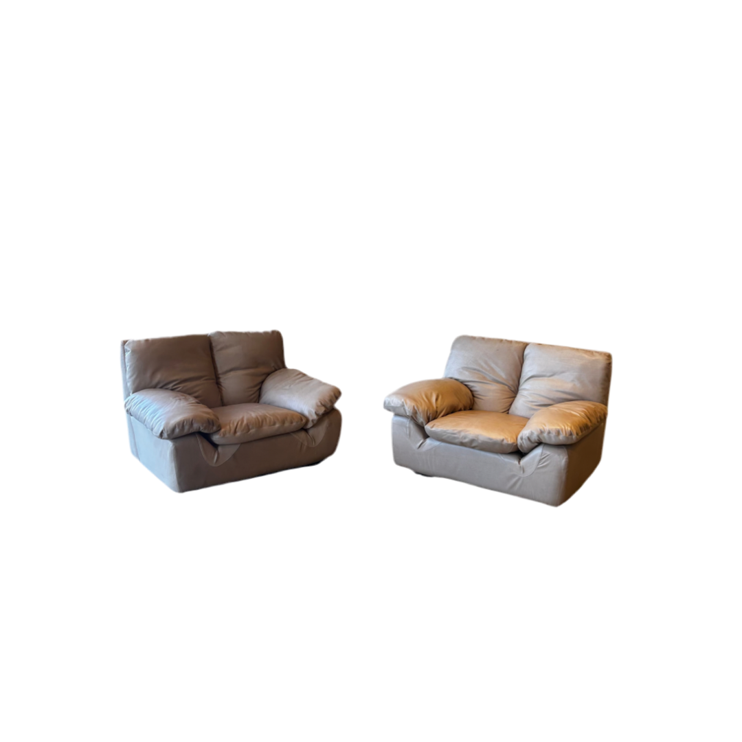 Italian Taupe Leather Chunky Armchair
