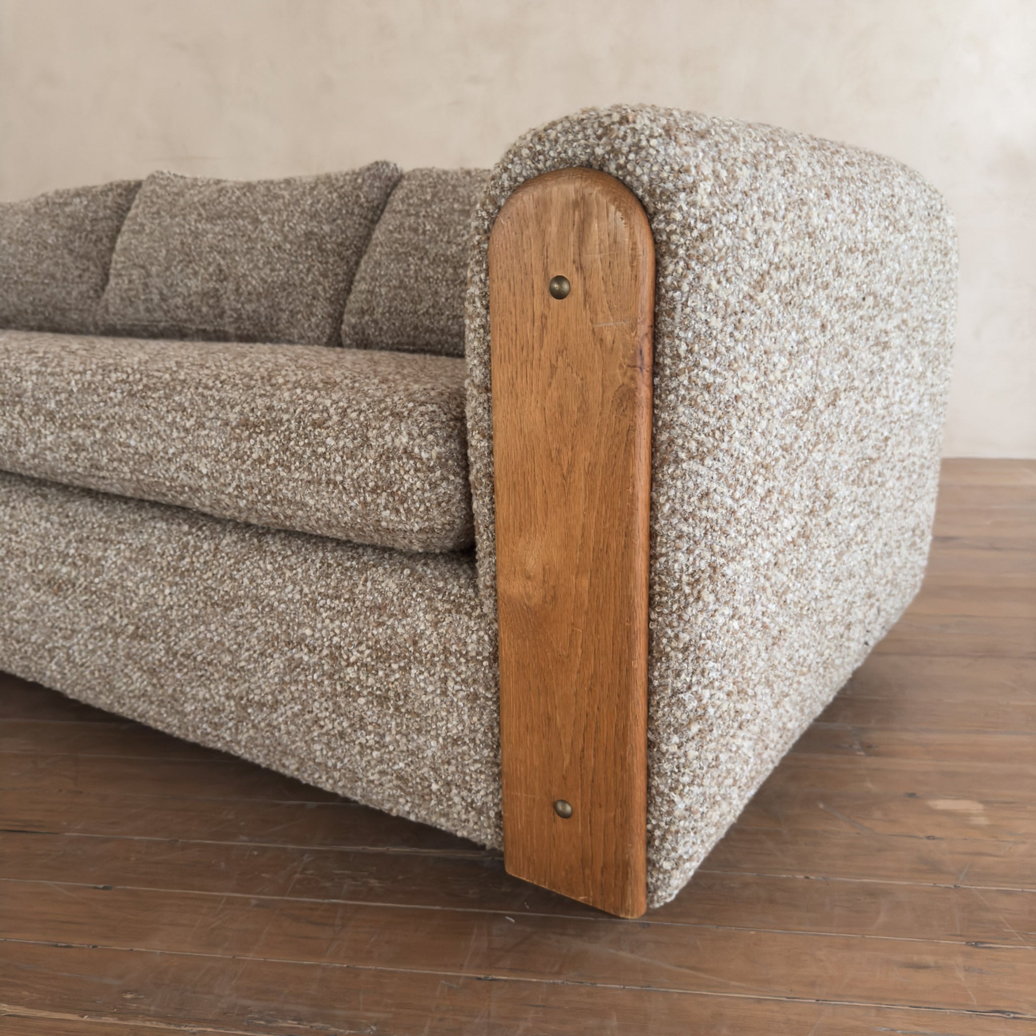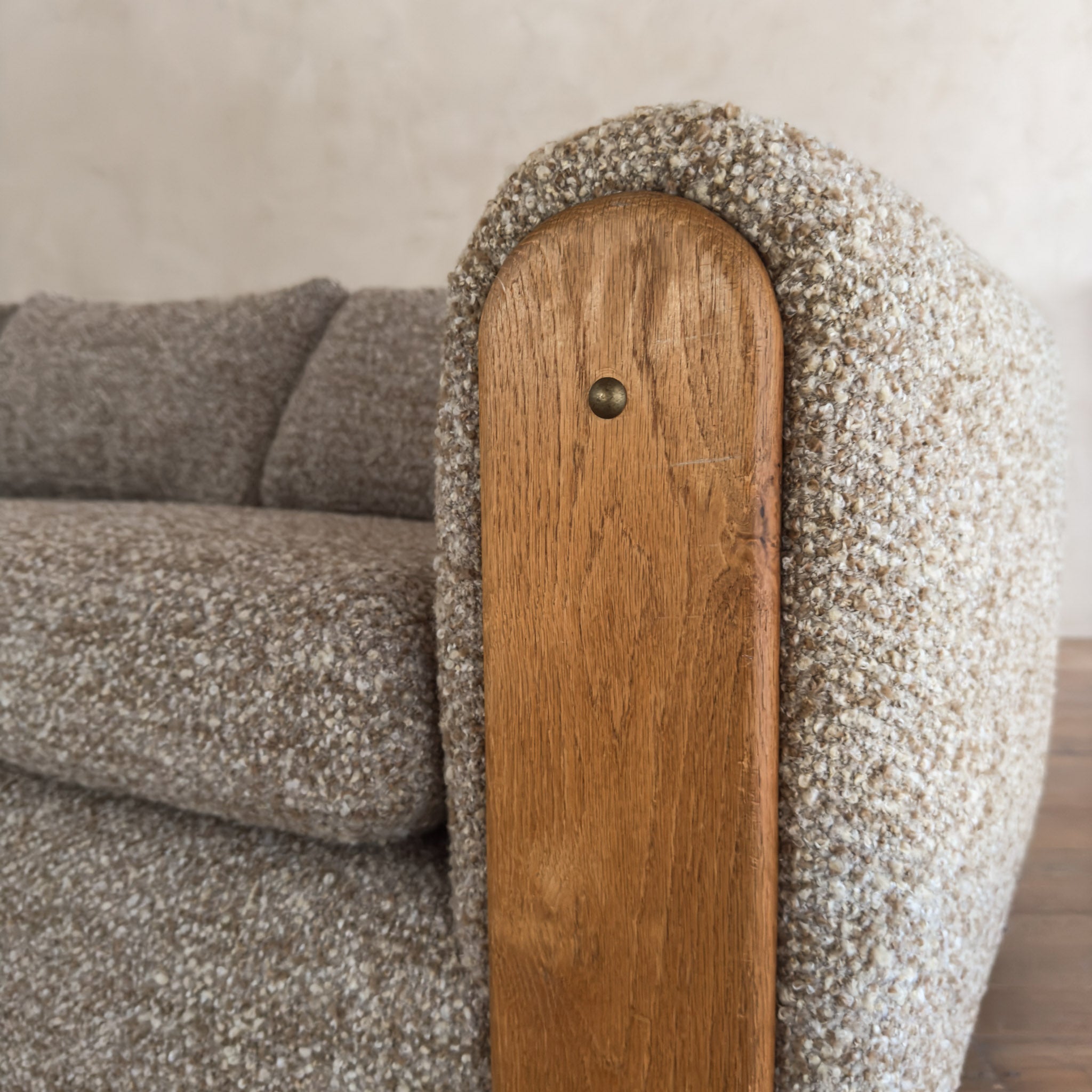 Oak Panel Sofa in Oatmeal Alpaca Bouclé, 1970s