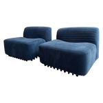 Pair of Blue Velvet Slipper Chairs by Titina Ammannati and Gianpiero Vitelli for Brunati Italia
