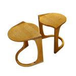 A set of two versatile side tables made from hand carved maple wood, featuring gently curved edges and a smooth finish. Can also function as stools.