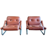 Pair of Italian Chrome and Leather Arm Chairs