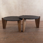 Pair of Slate and Oak Tables, France, 1970s