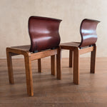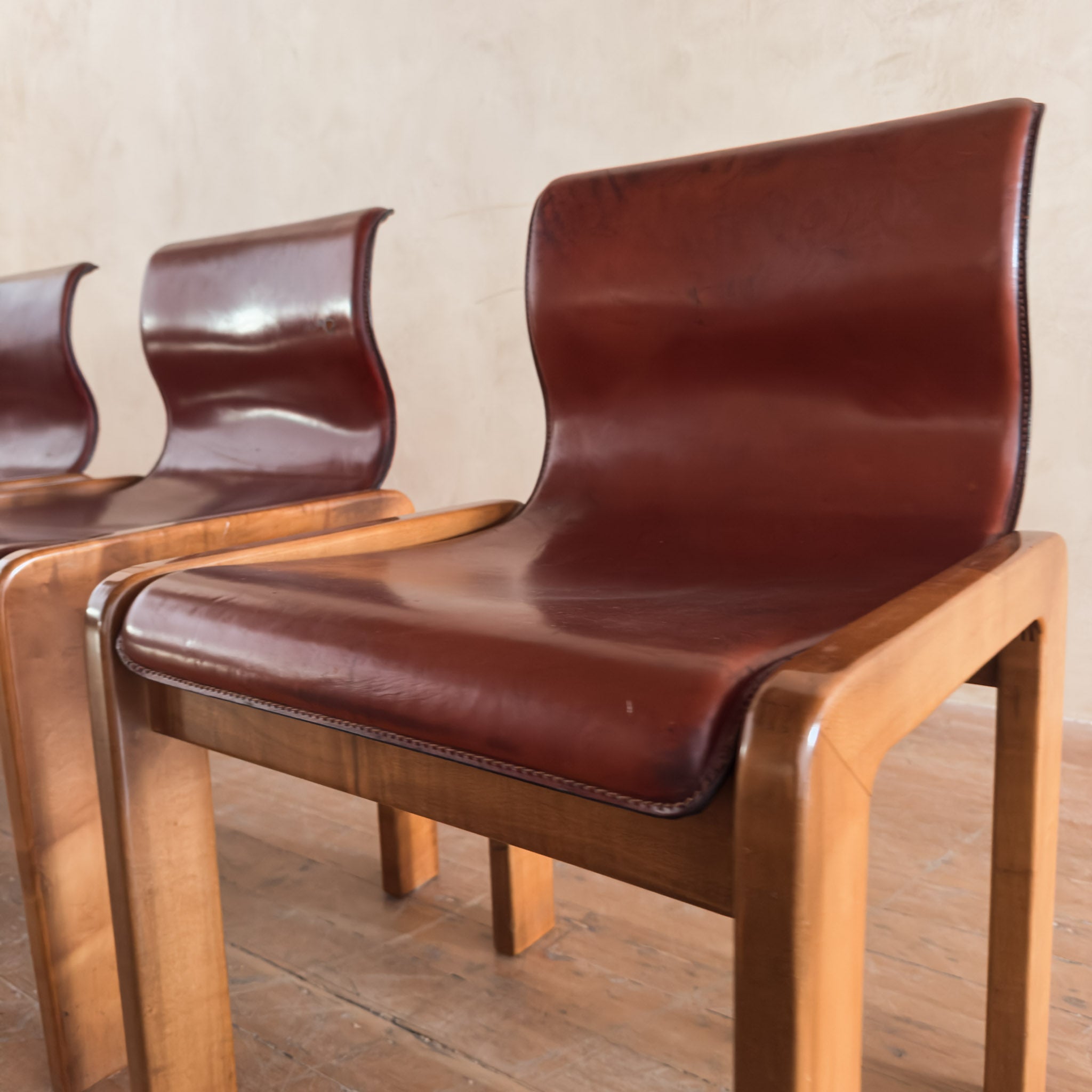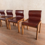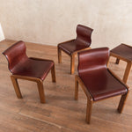 Set of 4 Leather Wood Frame Chairs by Afra and Tobia Scarpa, 1970s
