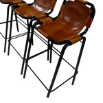 Set of 4 Vintage Leather Sling Barstools