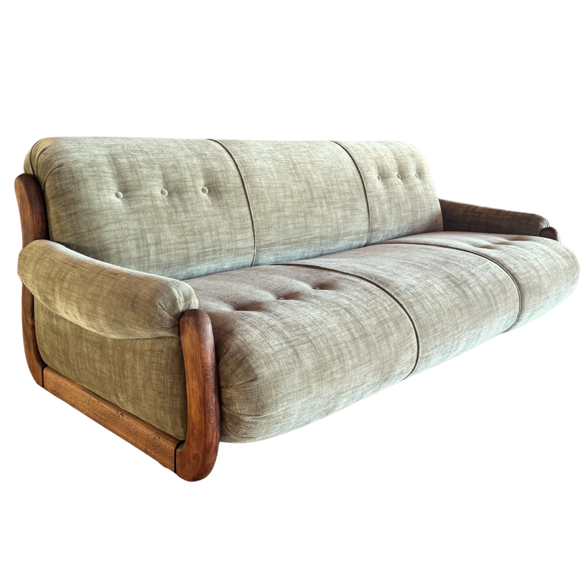Vintage Sage Green Spanish Oak Framed Sofa, 1960s
