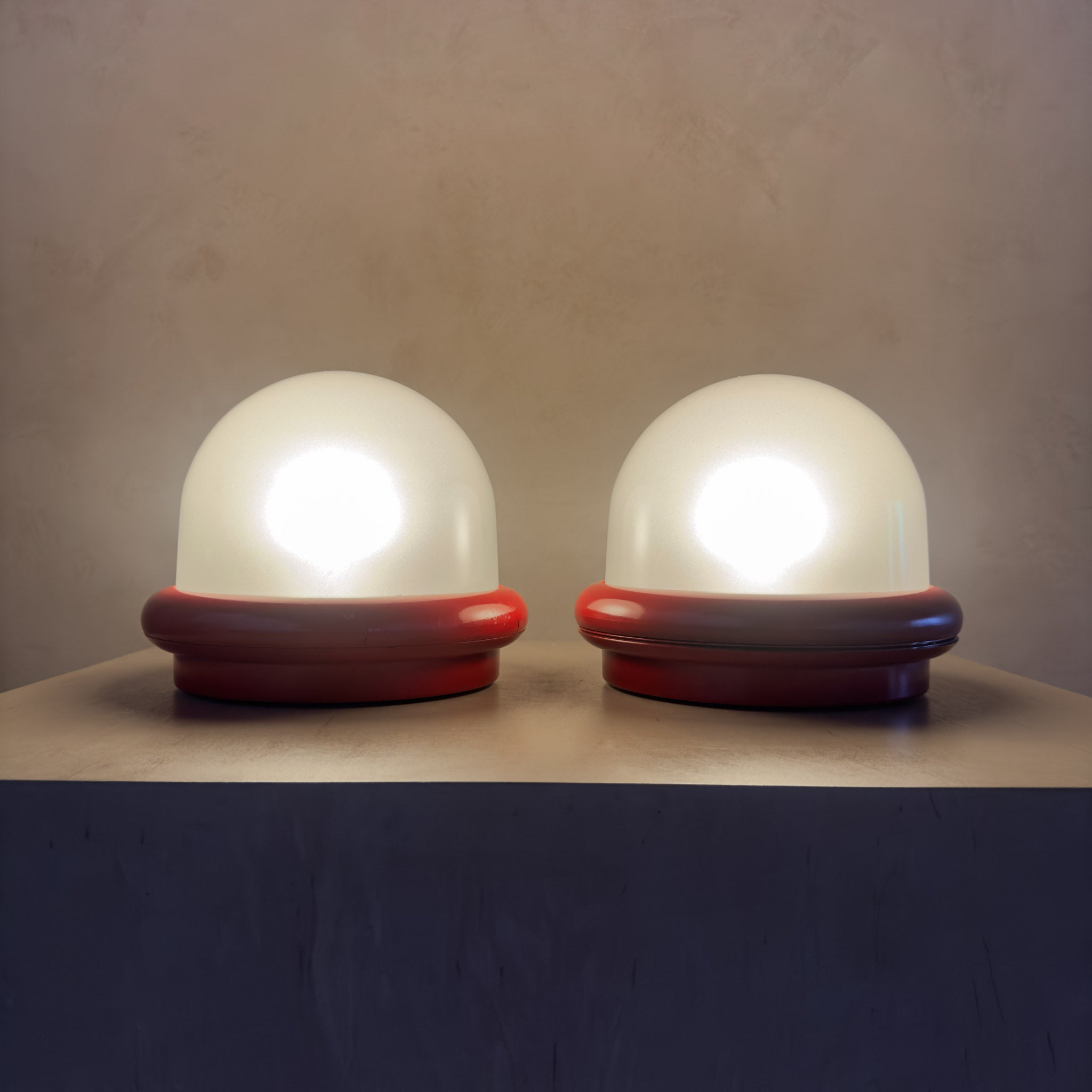 Pair of Red Accent Dome Table Lamps attr. Prisma Duna, 1970s