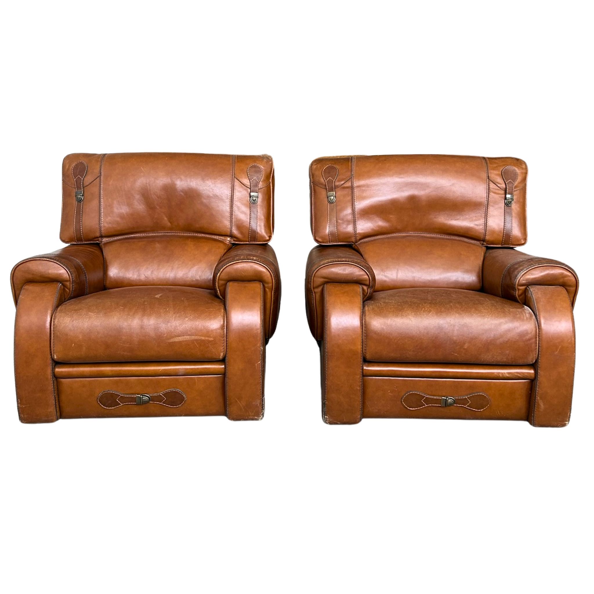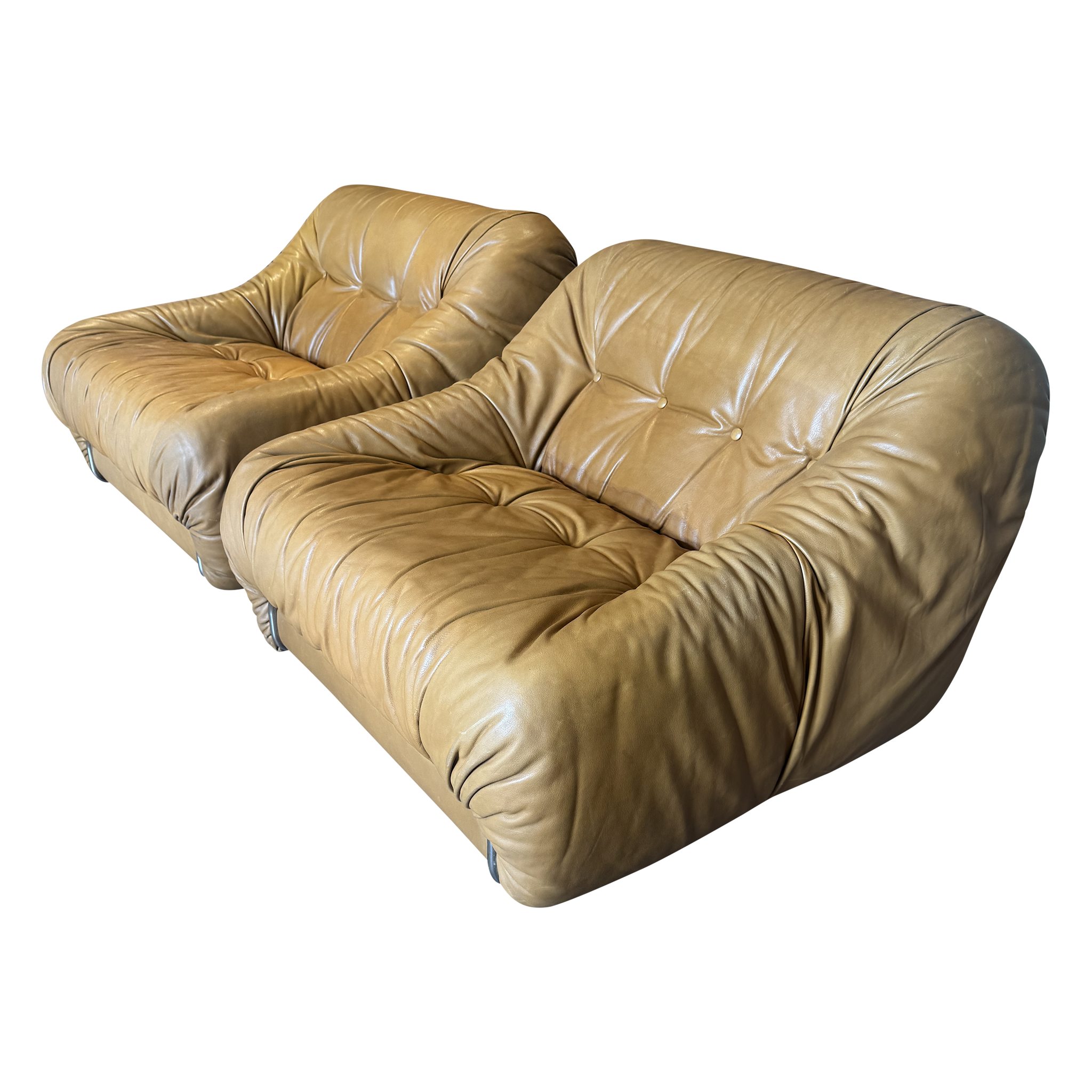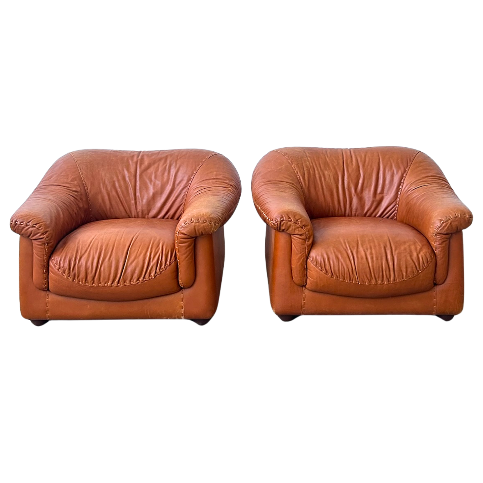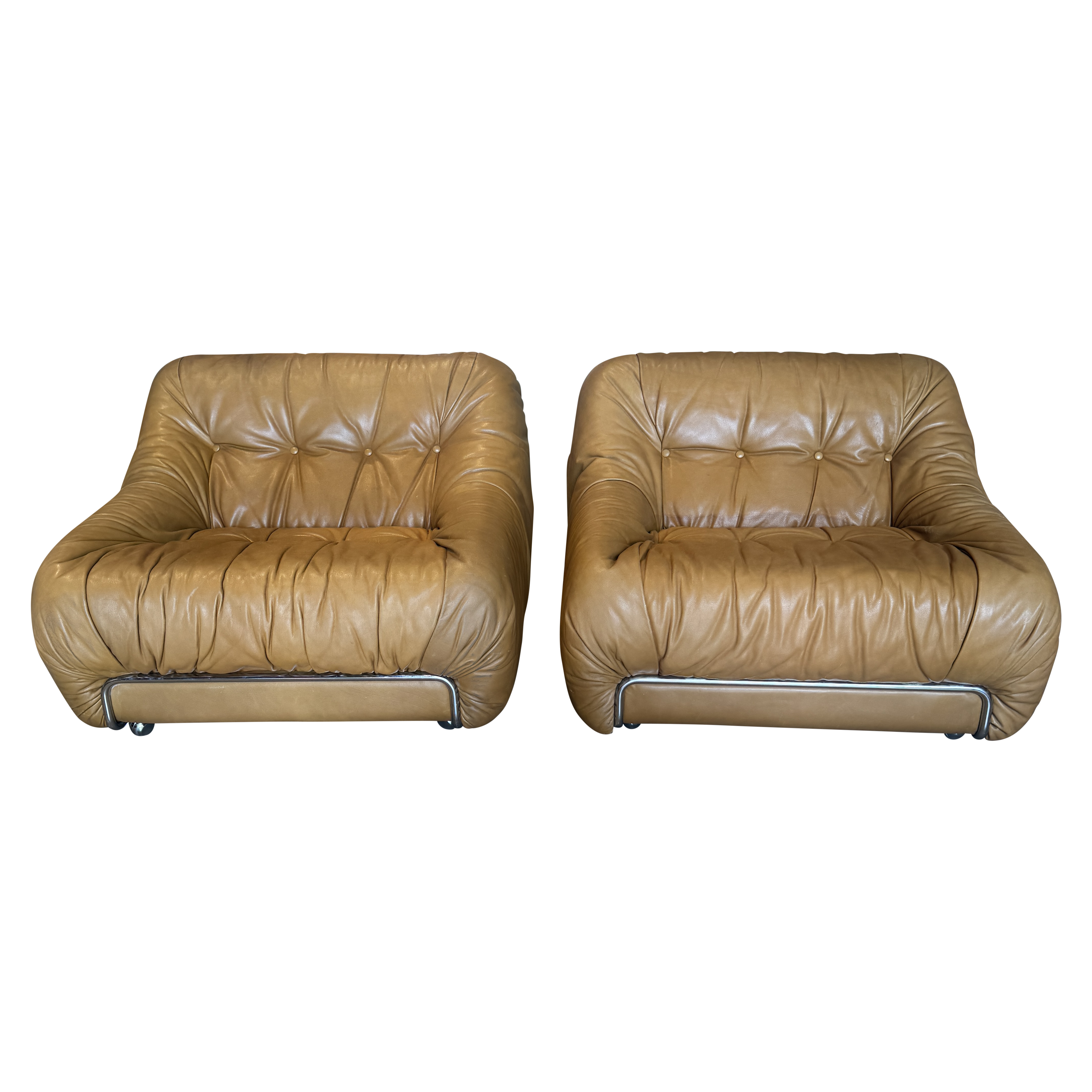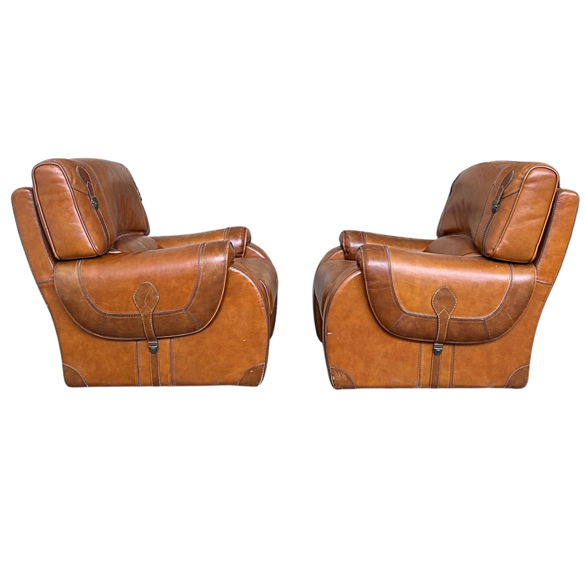 Pair of Cognac Leather ‘Soleado’ Lounge Chairs by Mobil Girgi, 1970s