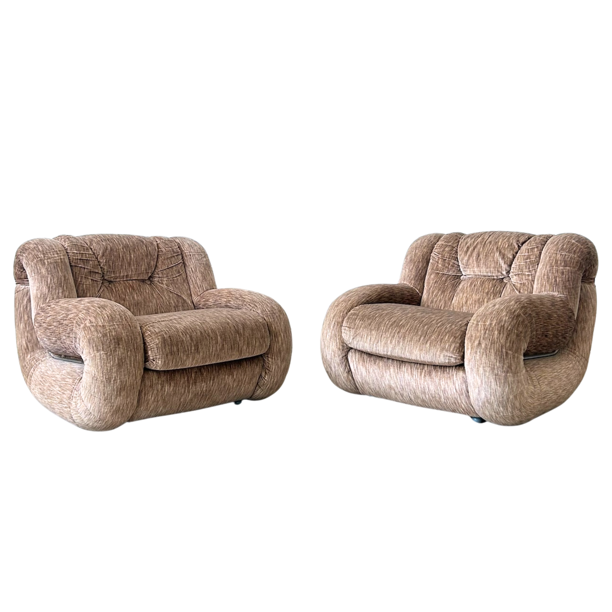 Pair of Camel Chenille 'Velasquez' Chairs by Mimo Padova, 1970s