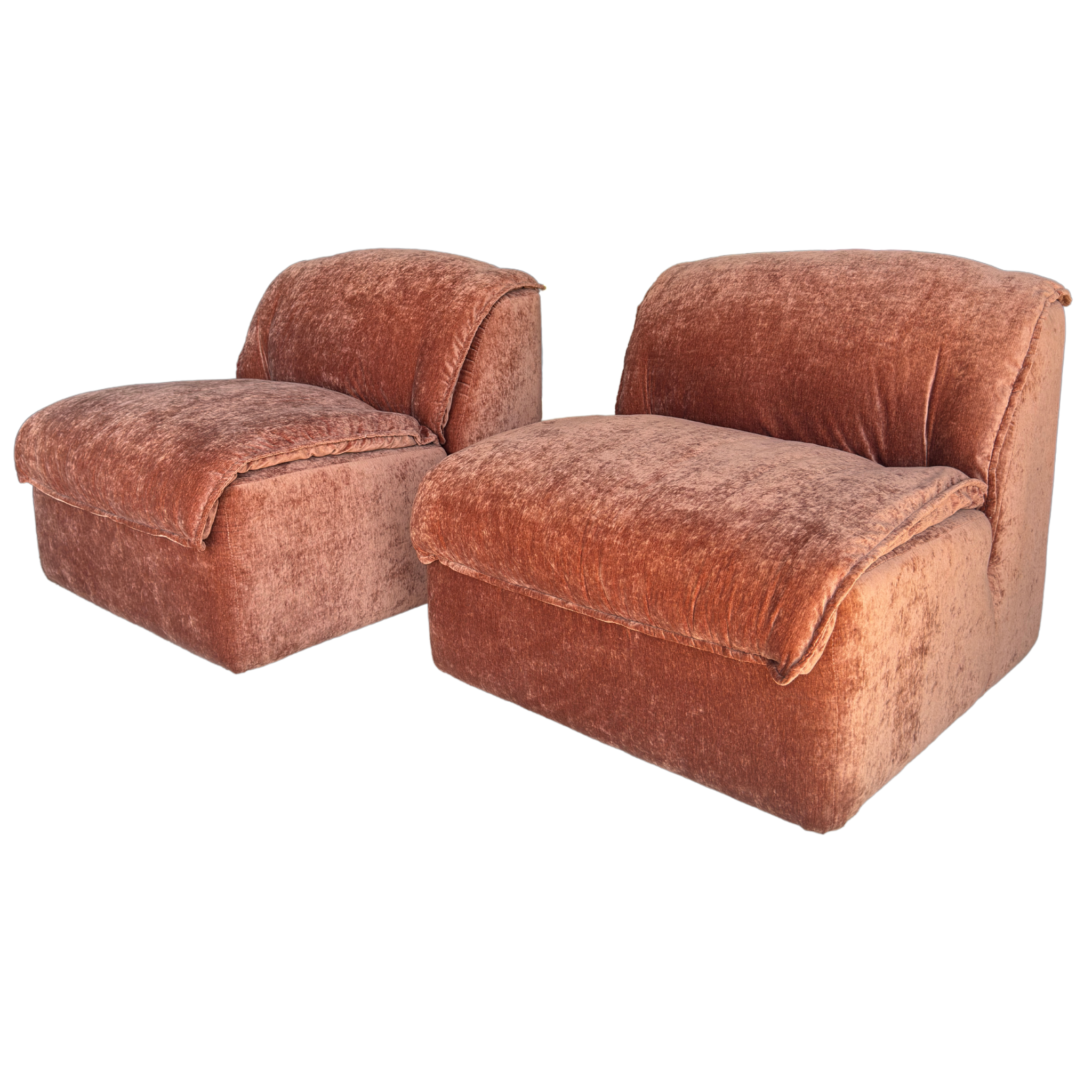 Pair of Italian Armless Lounge Chairs in Rosewood Velvet