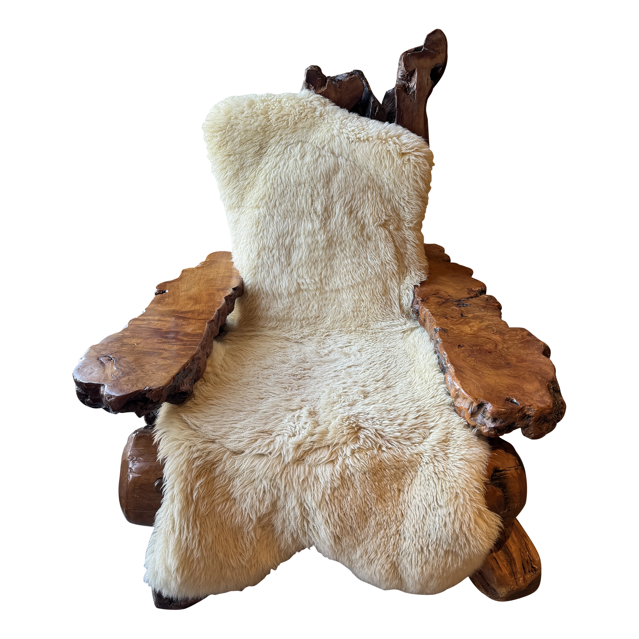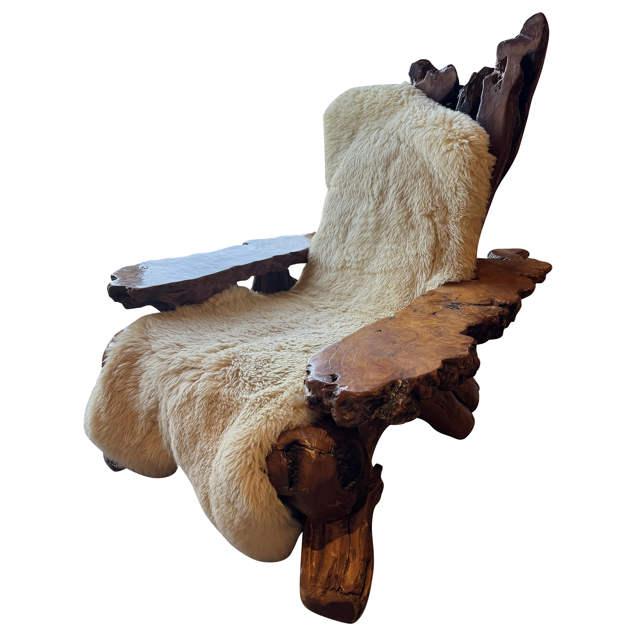 Antique Sculpted Oak Lounge with Sheepskin Cushions