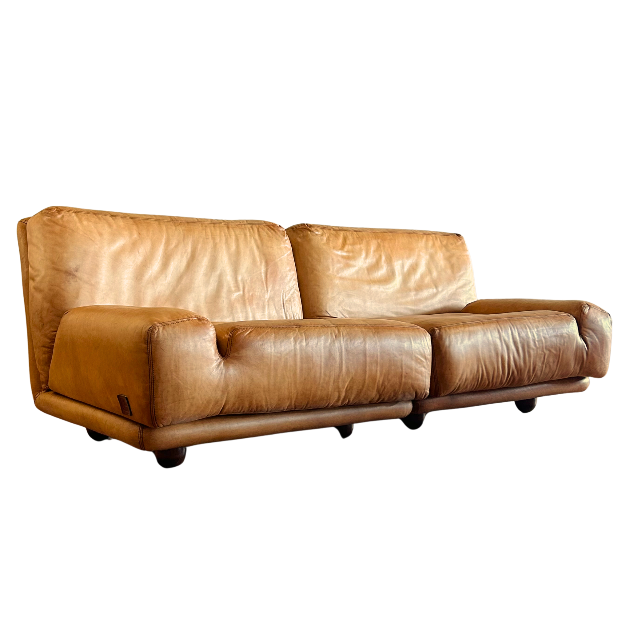 Vintage Italian Leather Two Piece Loveseat