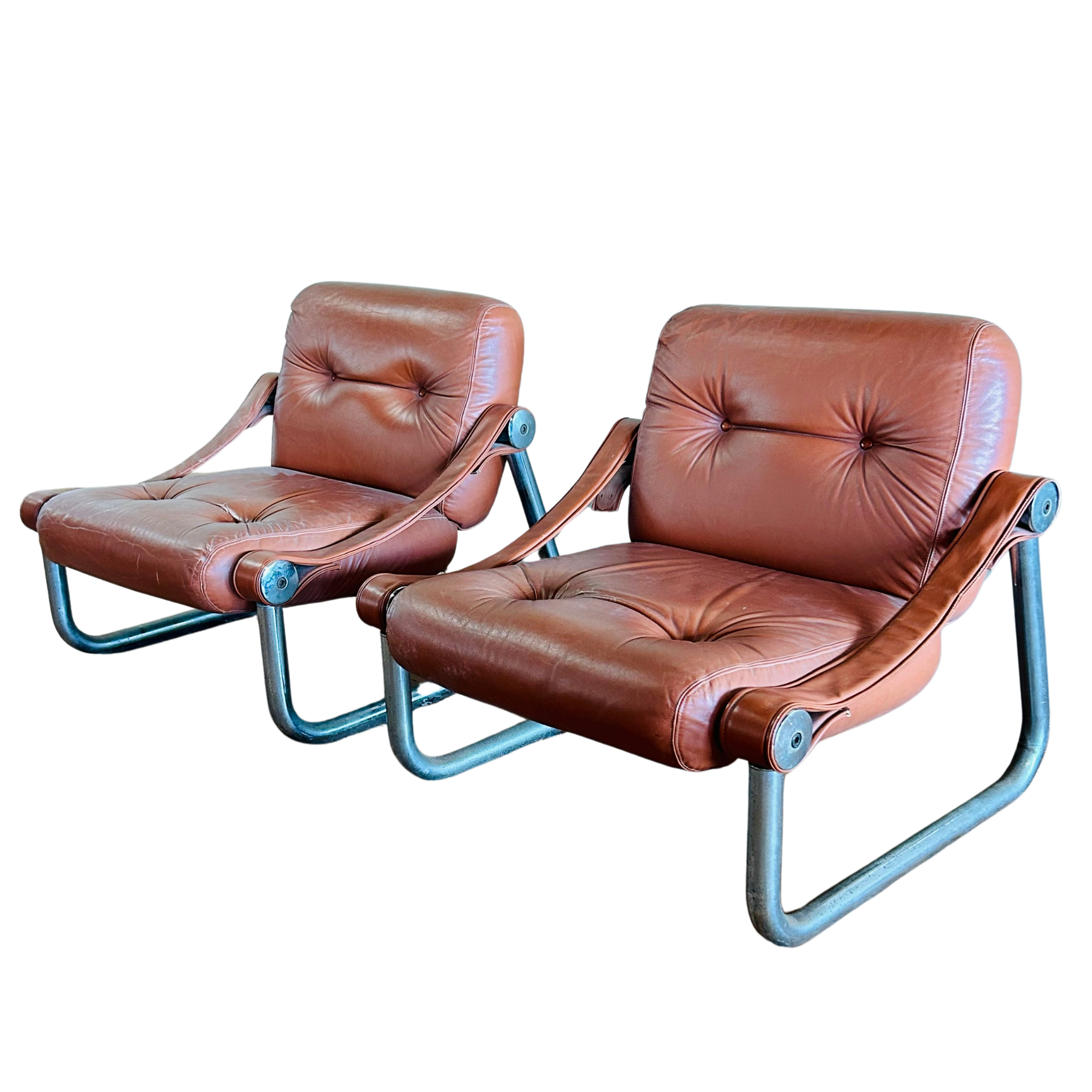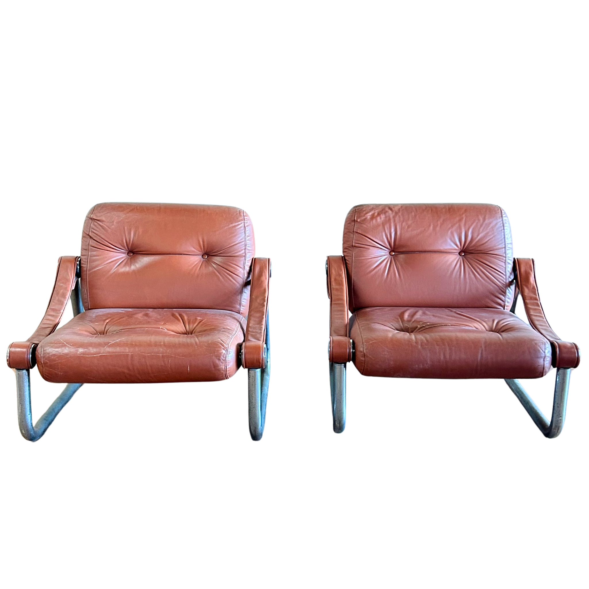 Pair of Italian Chrome and Leather Arm Chairs