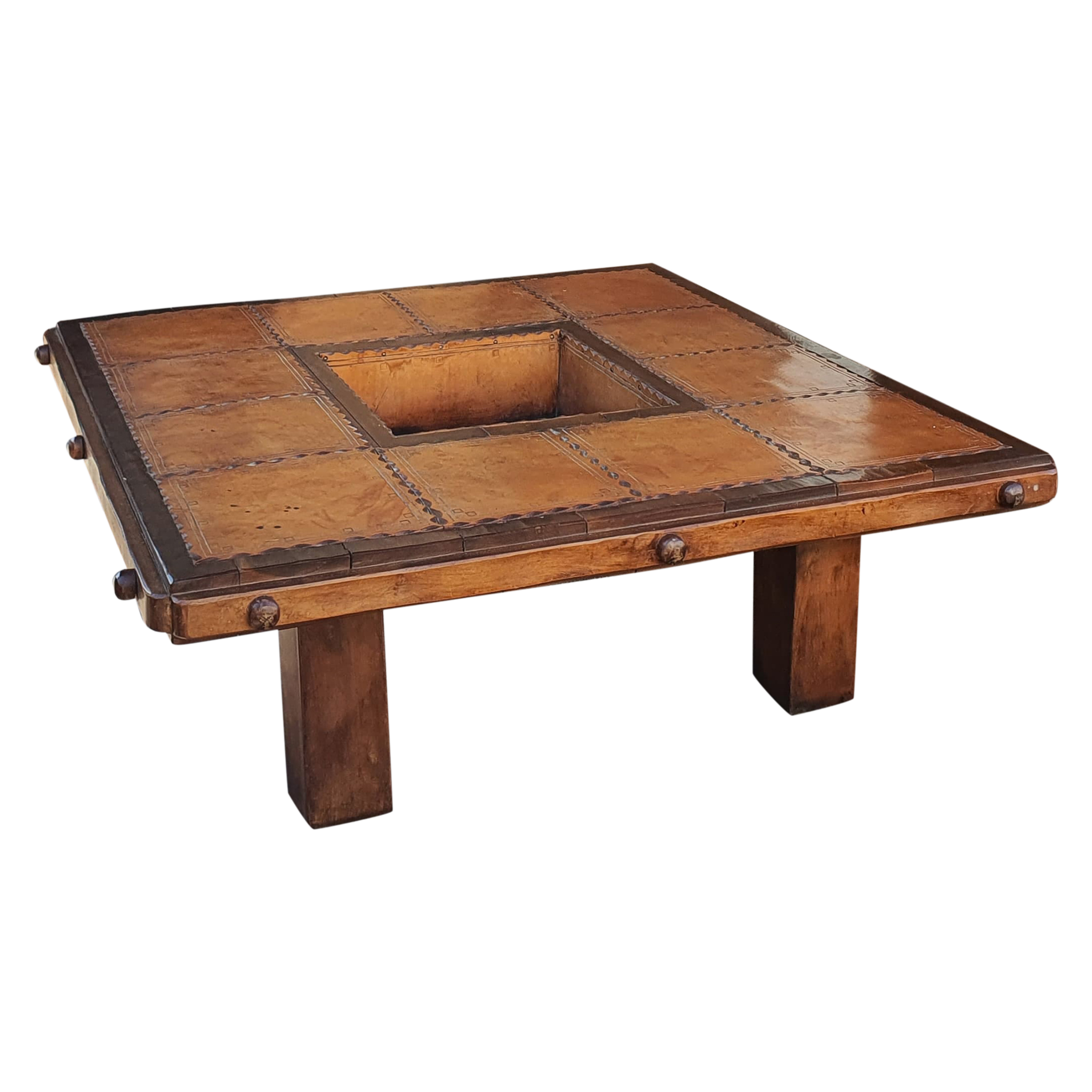 Vintage French Wood and Leather Patchwork Coffee Table