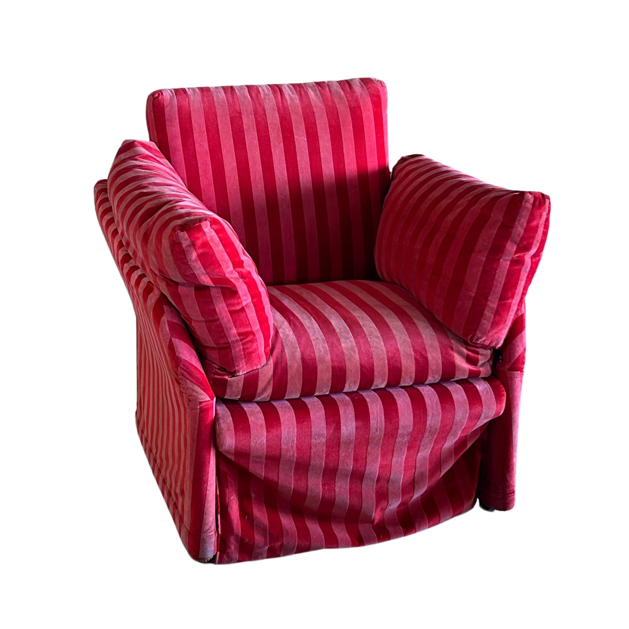 Italian Red Striped Velvet Accent Chair