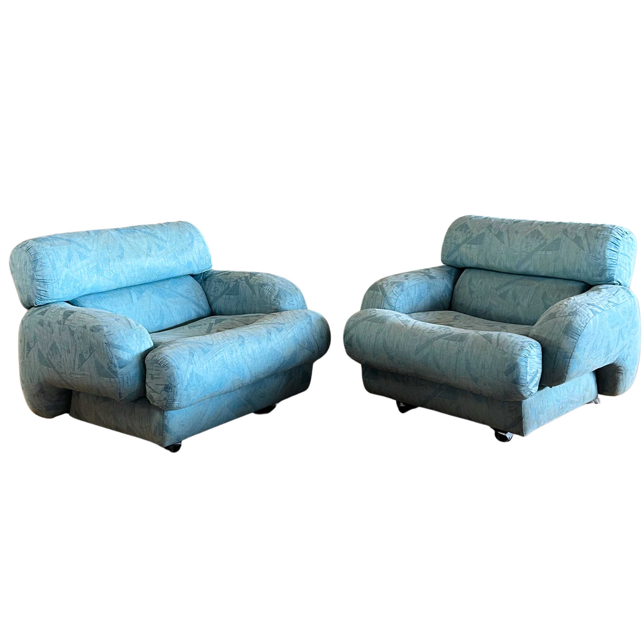 Pair of Postmodern Teal Lounge Chairs
