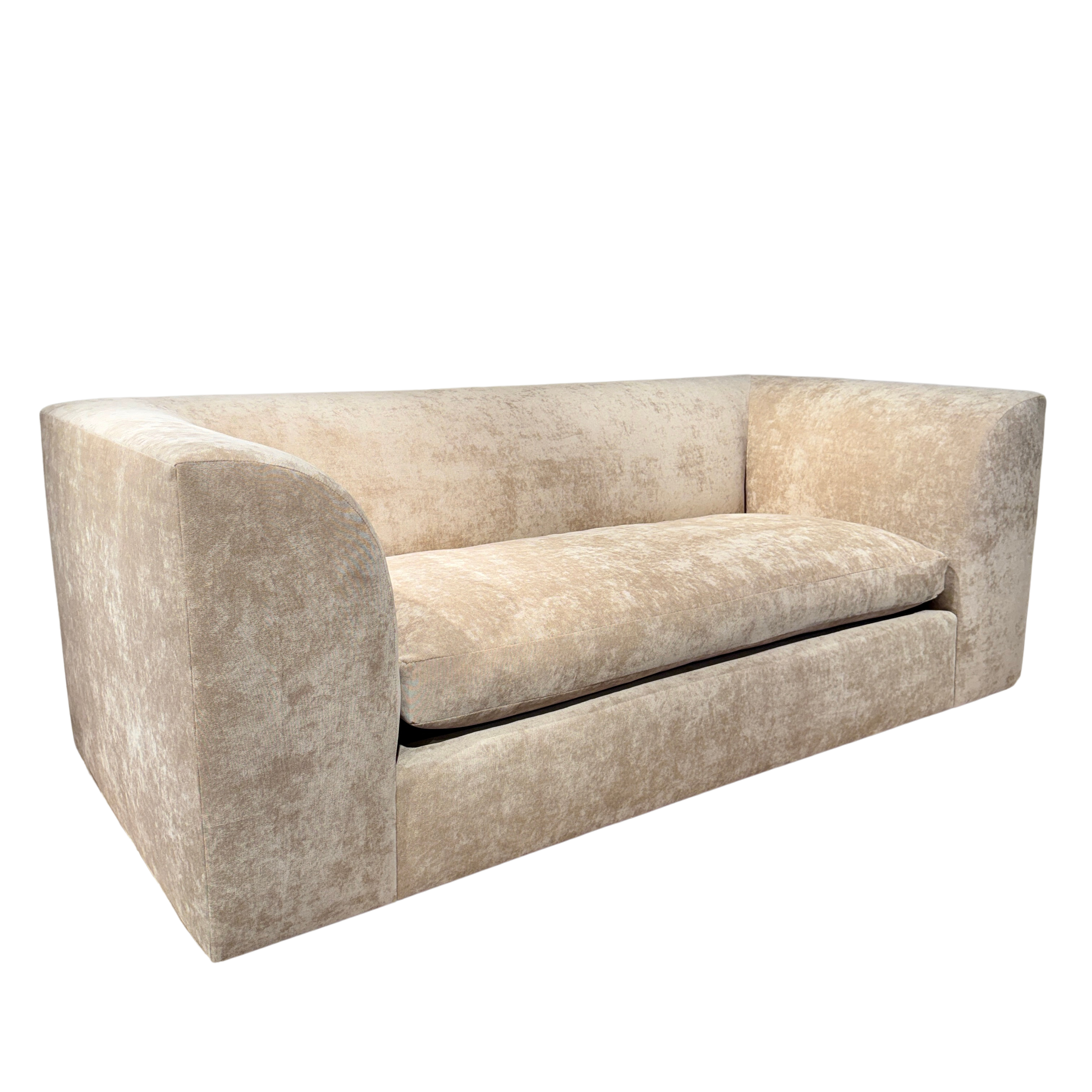 Curved Arm Loveseat in Champagne Velvet