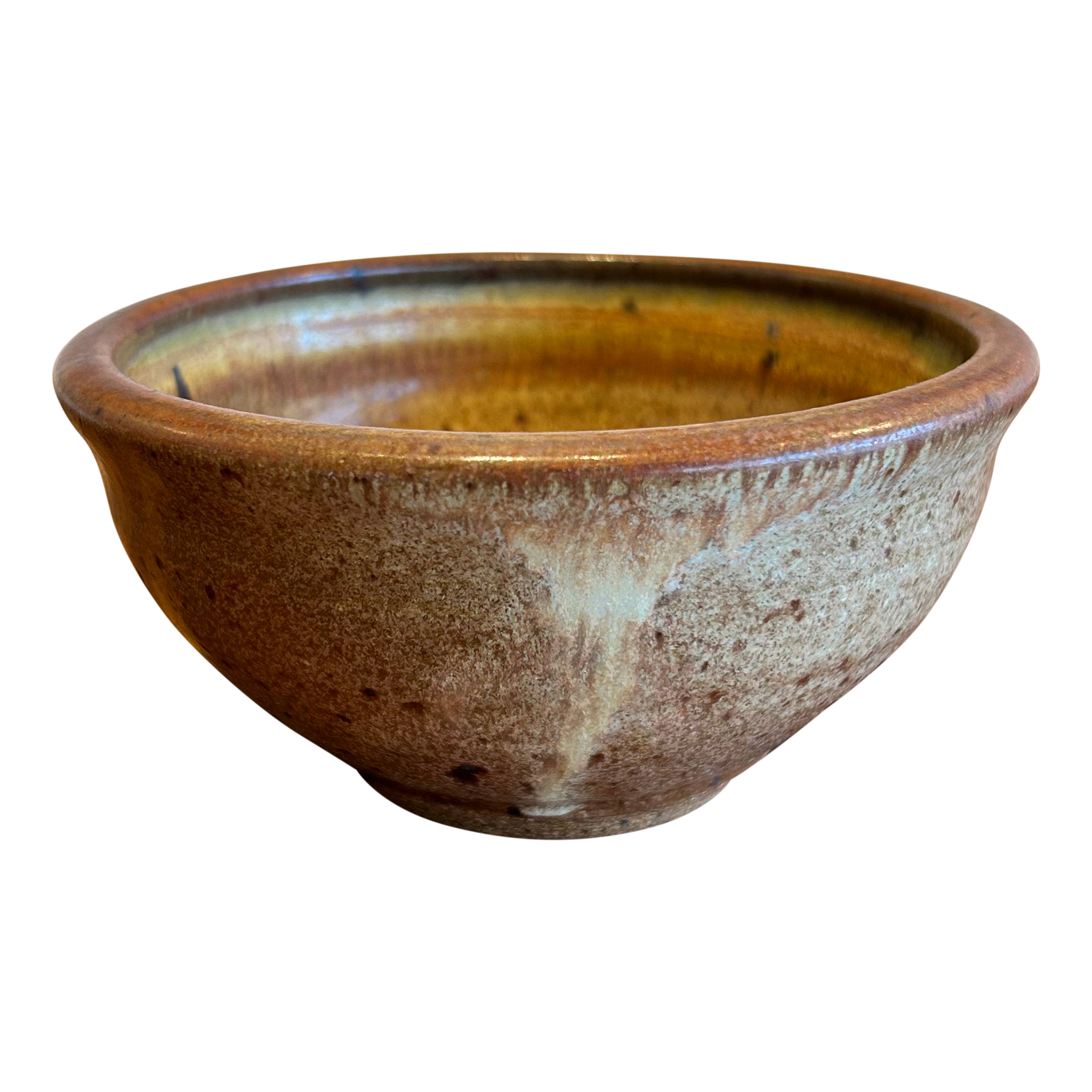 Studio Pottery Bowl in Terracotta and Green Glaze