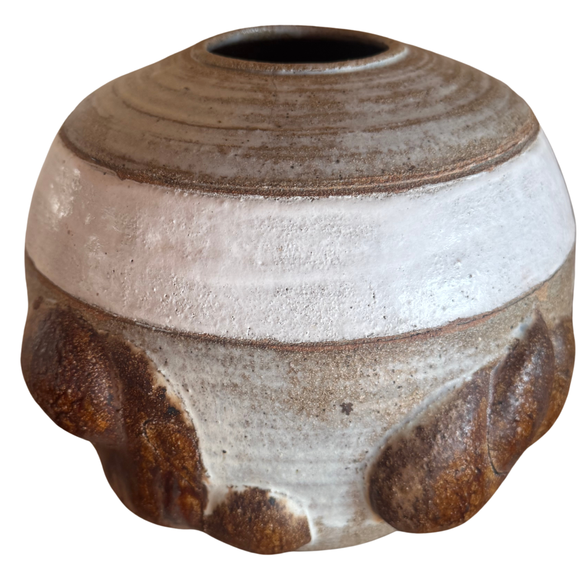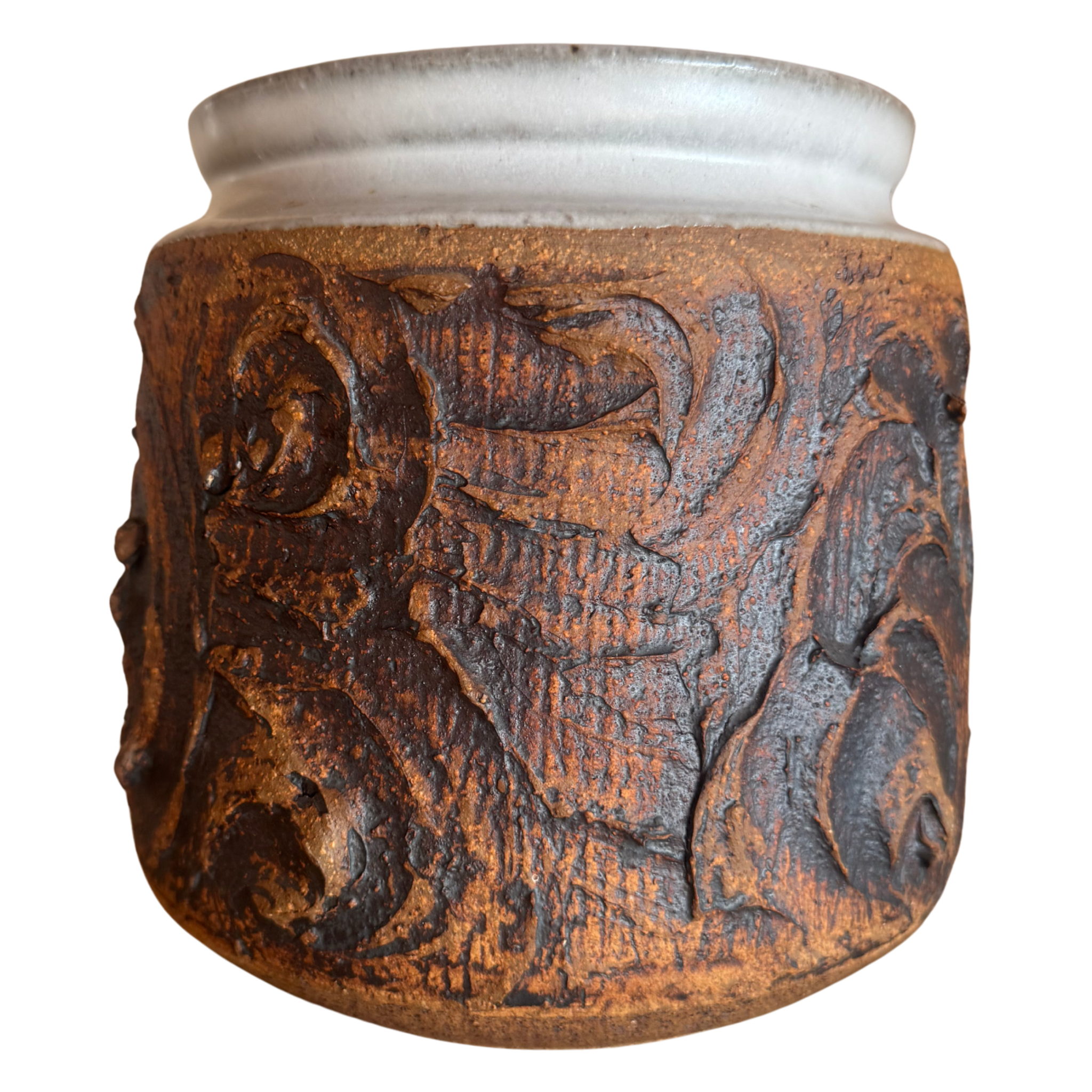 Textured Studio Pottery Vessel with Geometric Detailing
