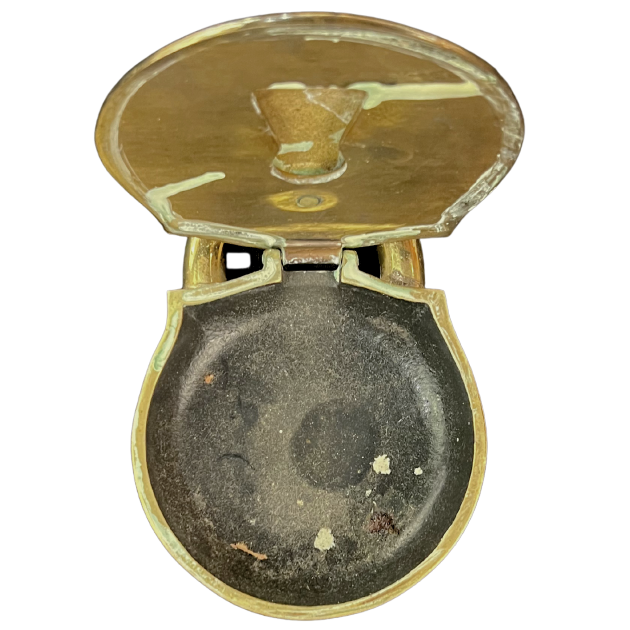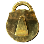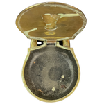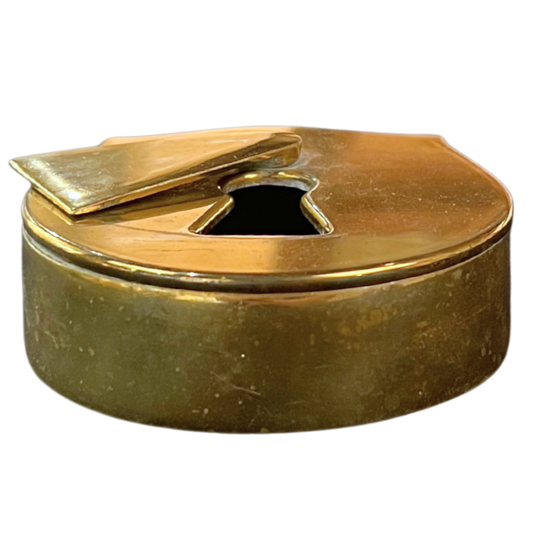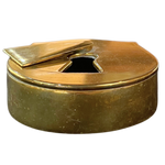 Brass box or ashtray with metal interior. Works well styled into a table setting or placed on a console. Keyhole cover is movable.