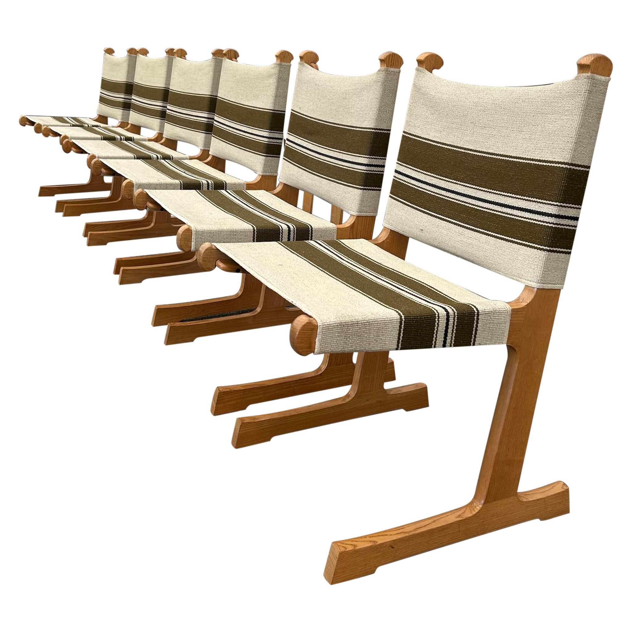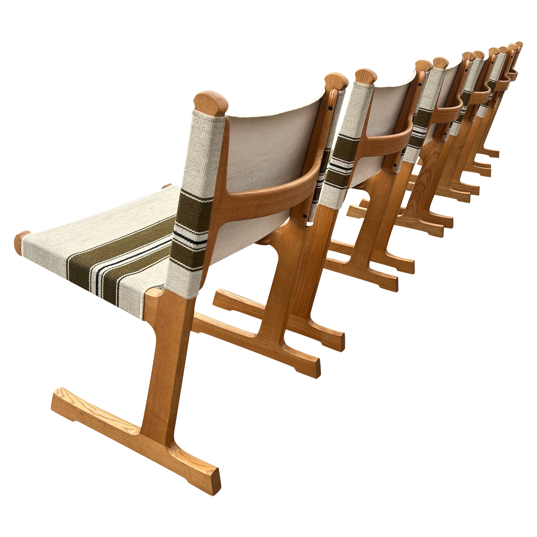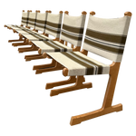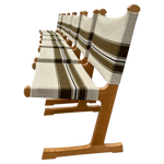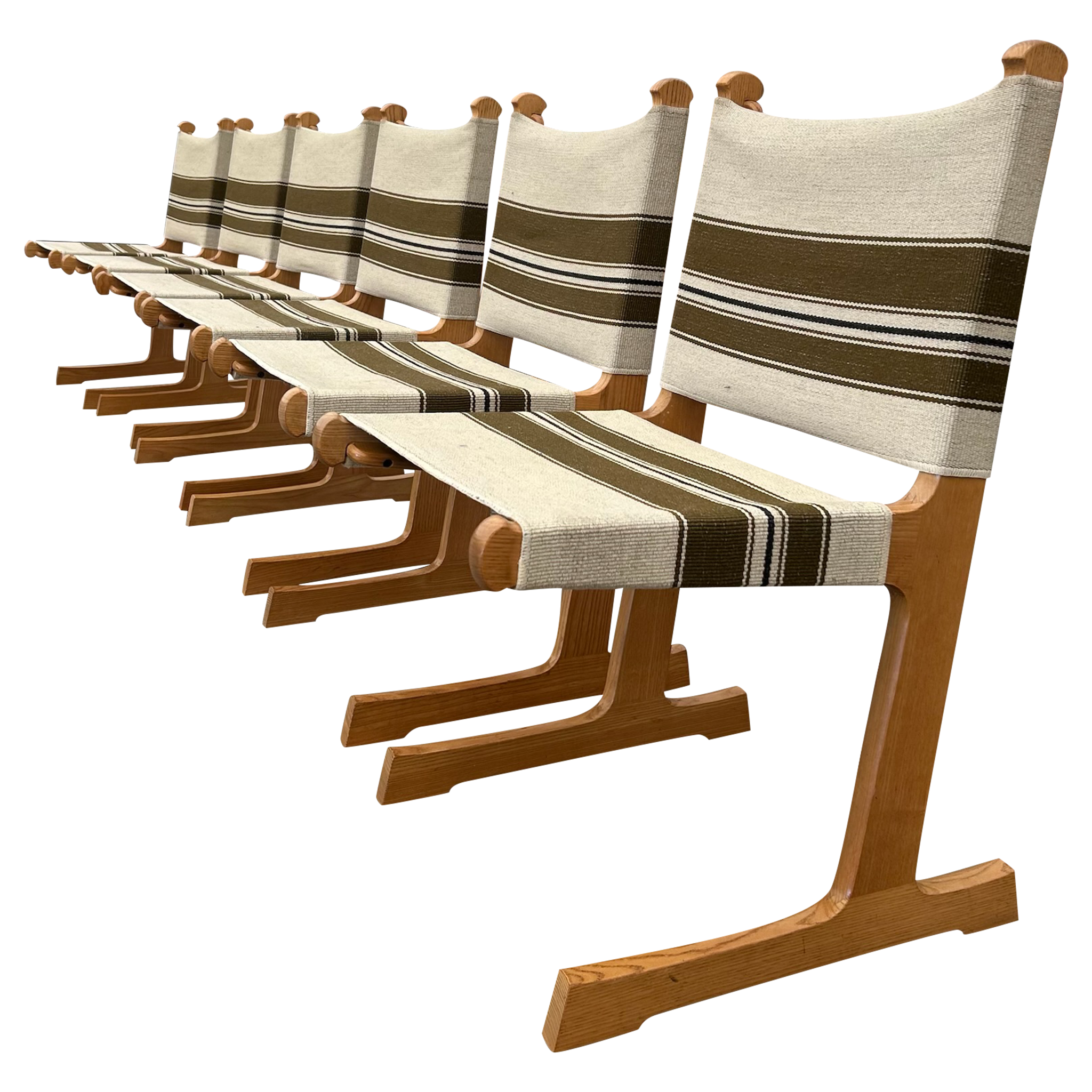 This piece is available for presale. Estimated arrival is February 20th. Oak frames with crisp, vertical lines paired with striped canvas in olive and cream. The weave brings a subtle texture against the warm wood. A straightforward Scandinavian build with an easy versatility.