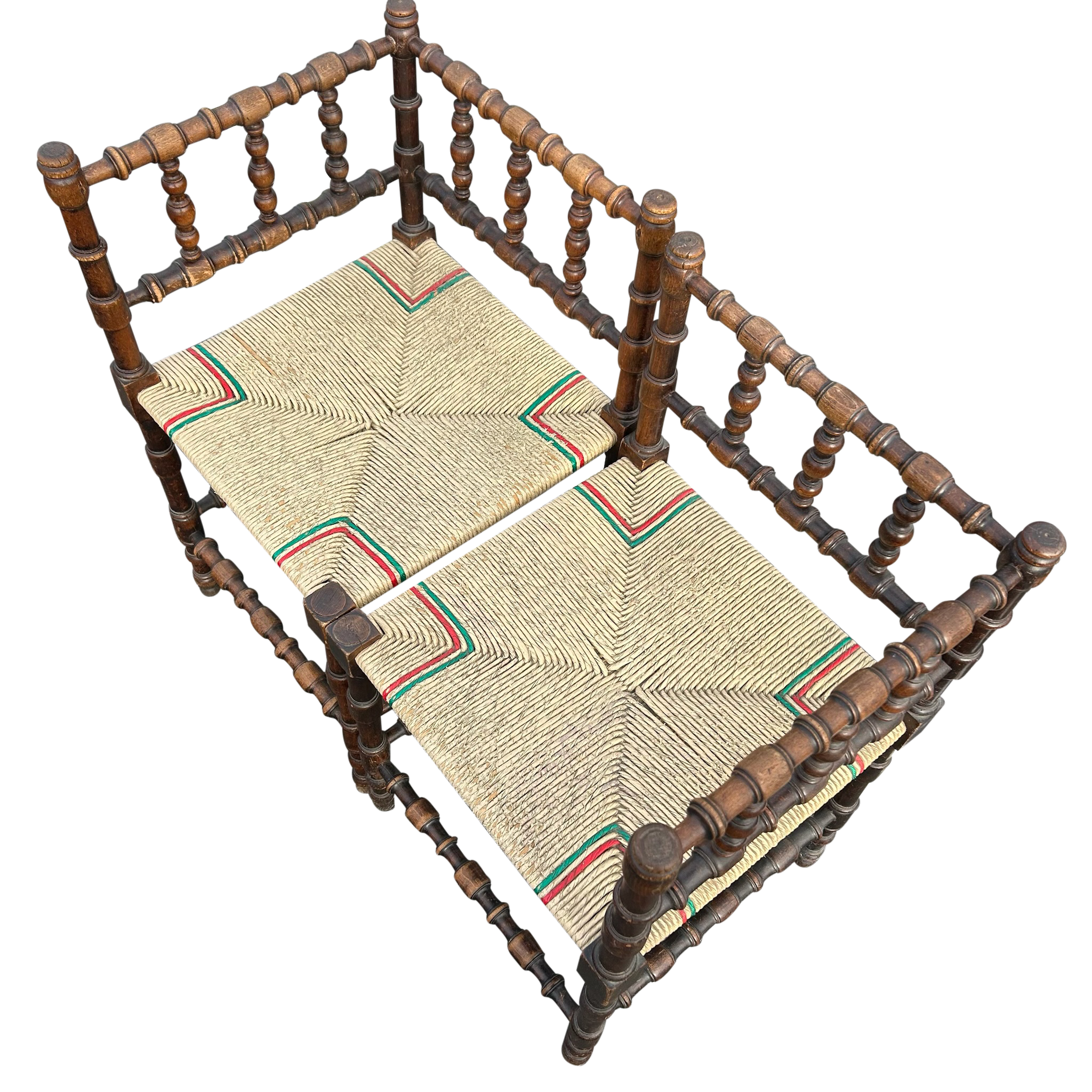 Pair of Antique Spindle Leg Rush Seat Chairs