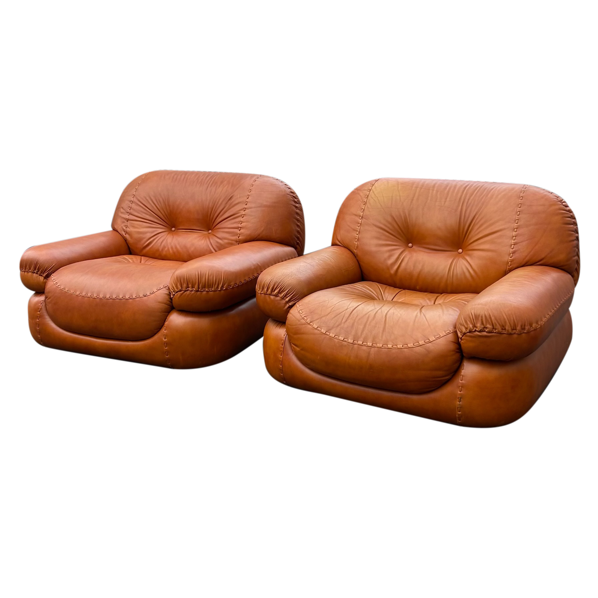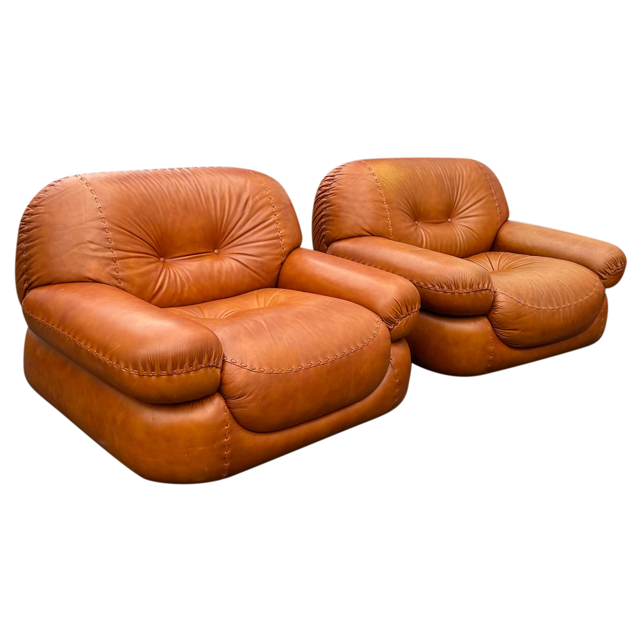 Pair of Cognac 'Sapporo' Lounge Chairs by Mobil Girgi