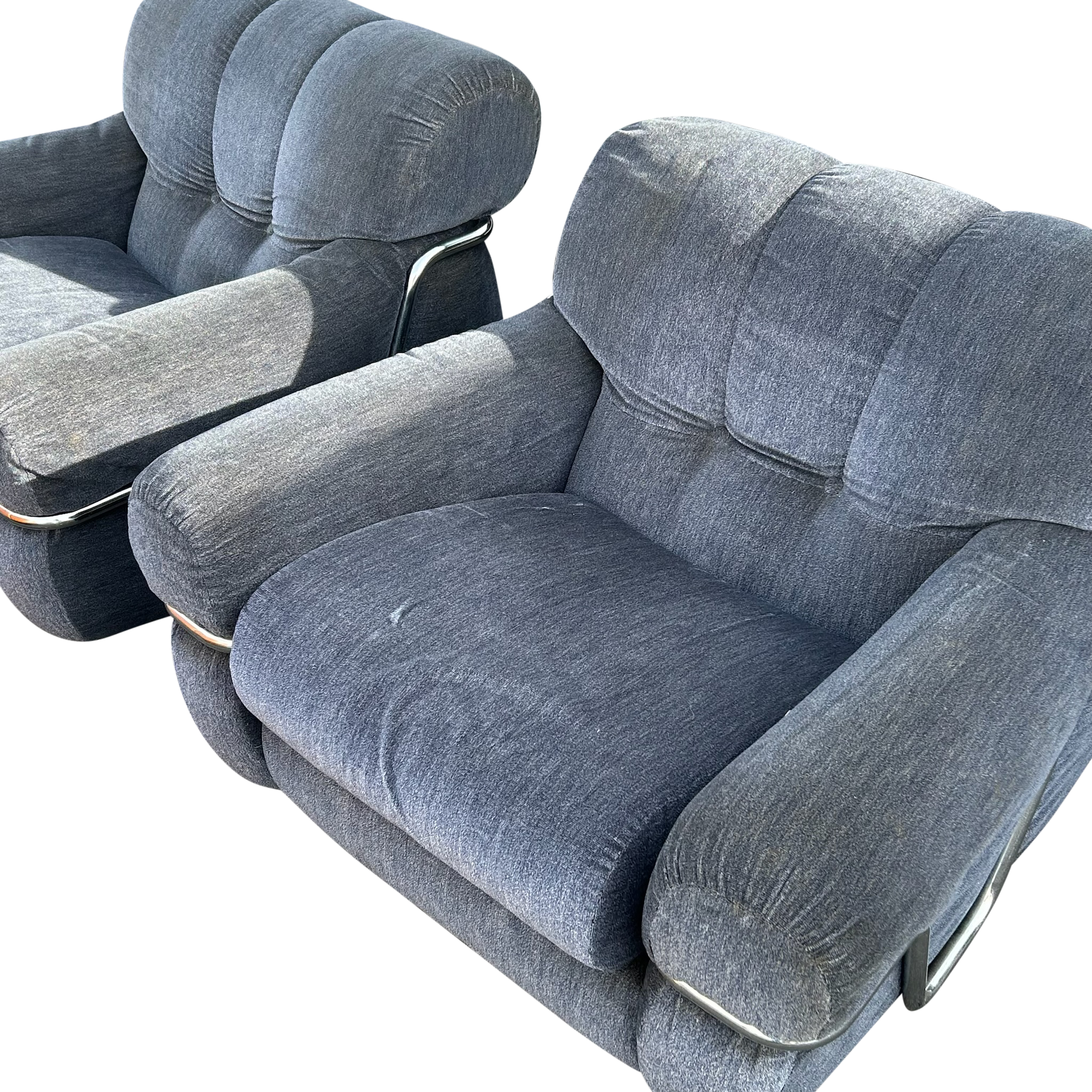 Pair of Velvet and Chrome 'Wopps' Lounge Chairs by Ernesto Radaelli, 1970s