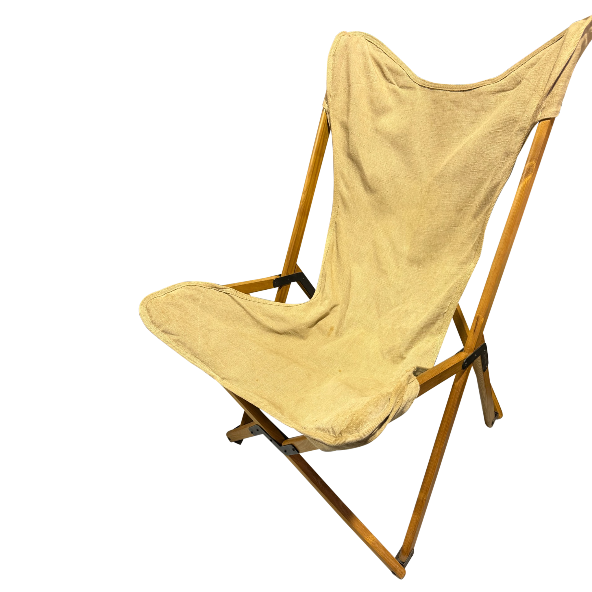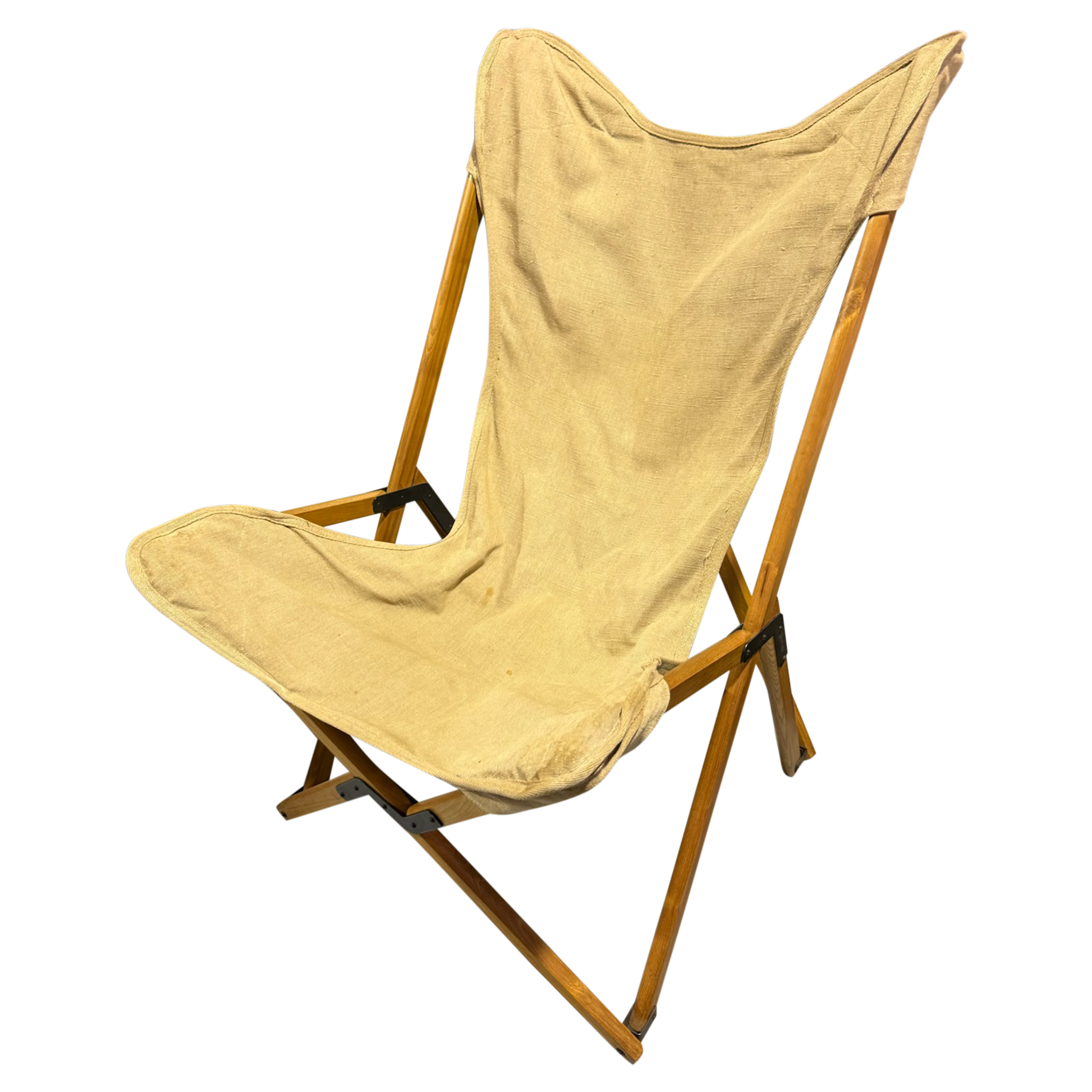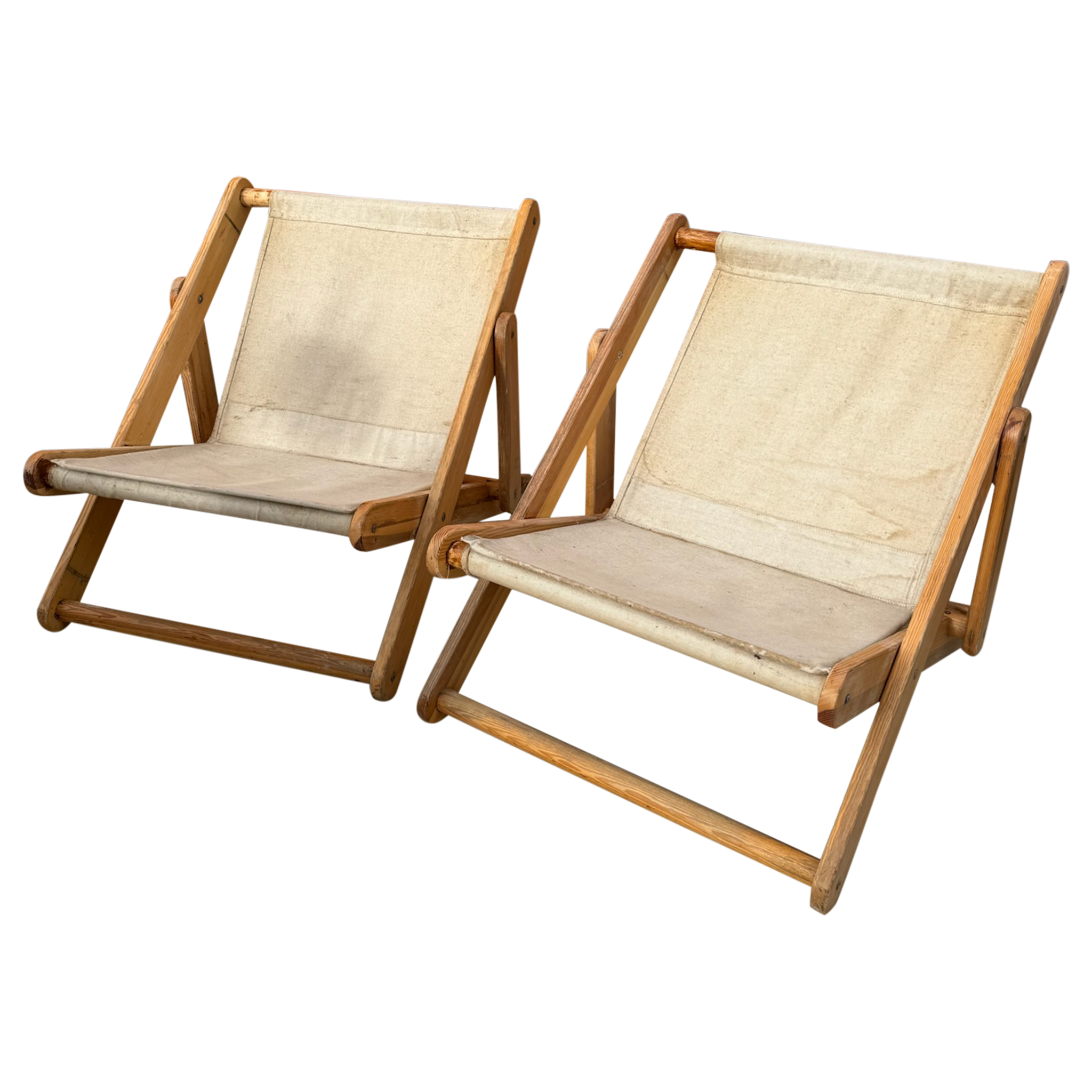 Pair of Danish Pine and Canvas Folding Lounge Chairs