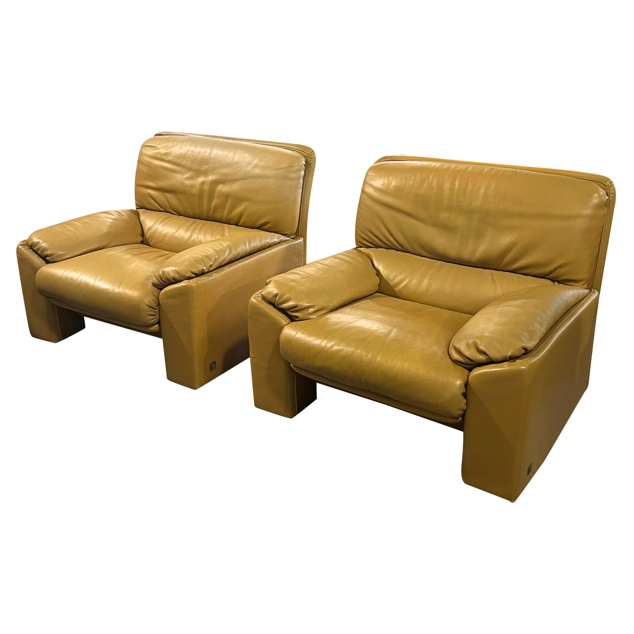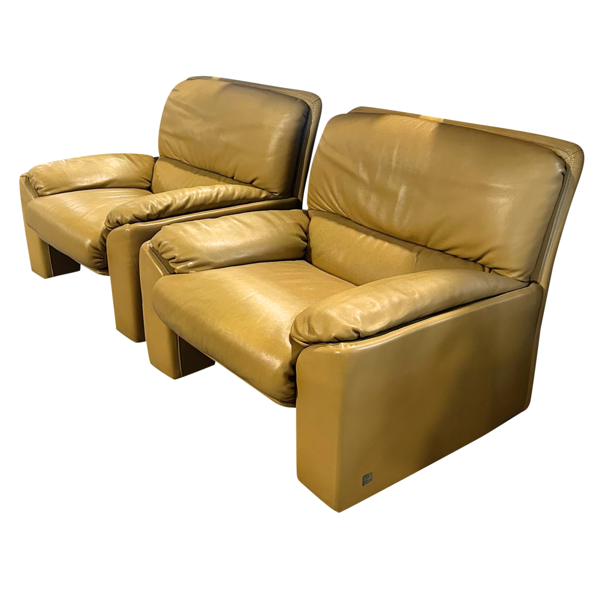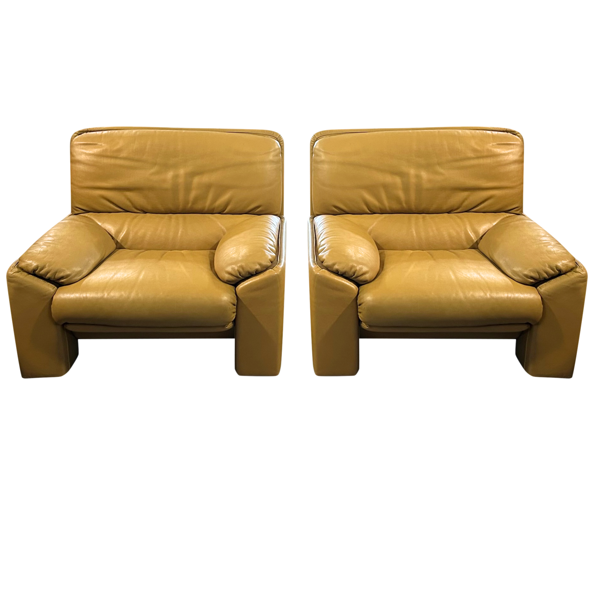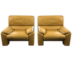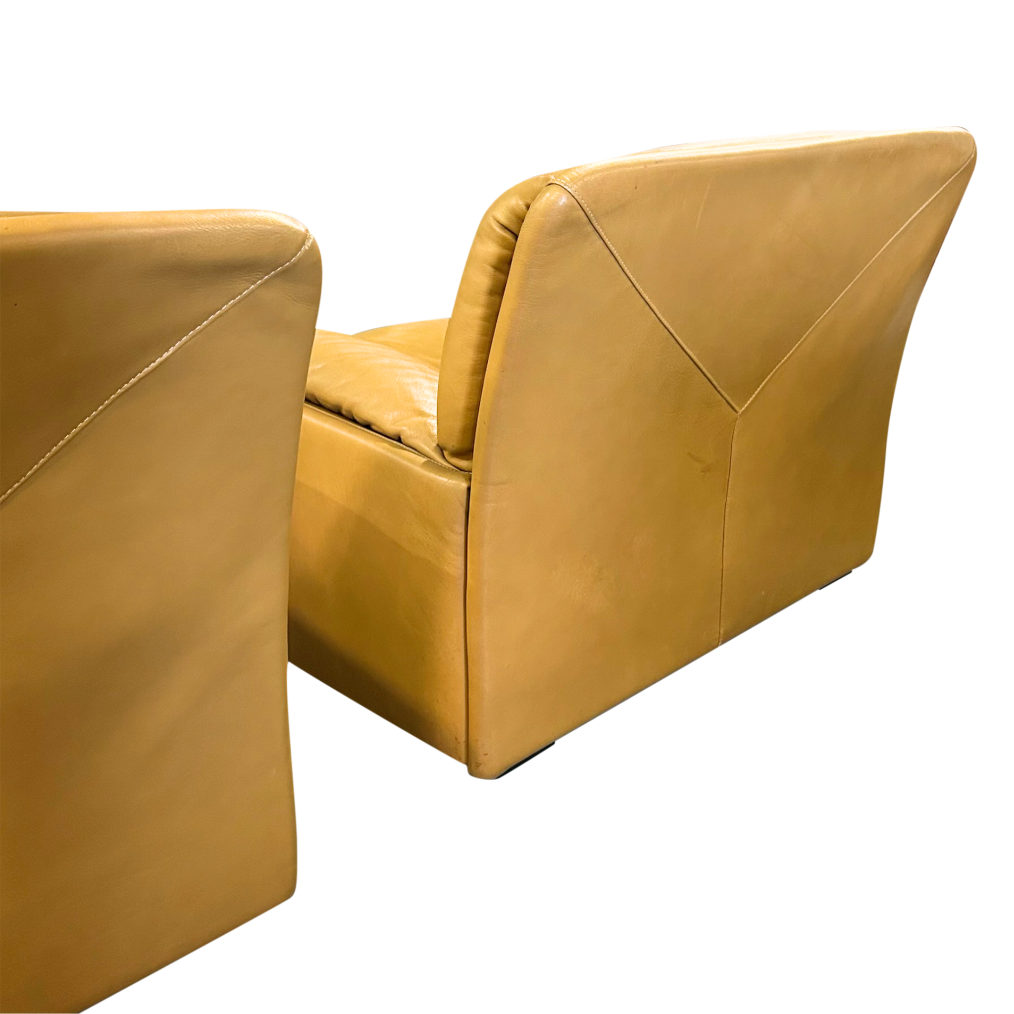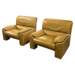 Pair of Busnelli Camel Leather Lounge Chairs, 1980s