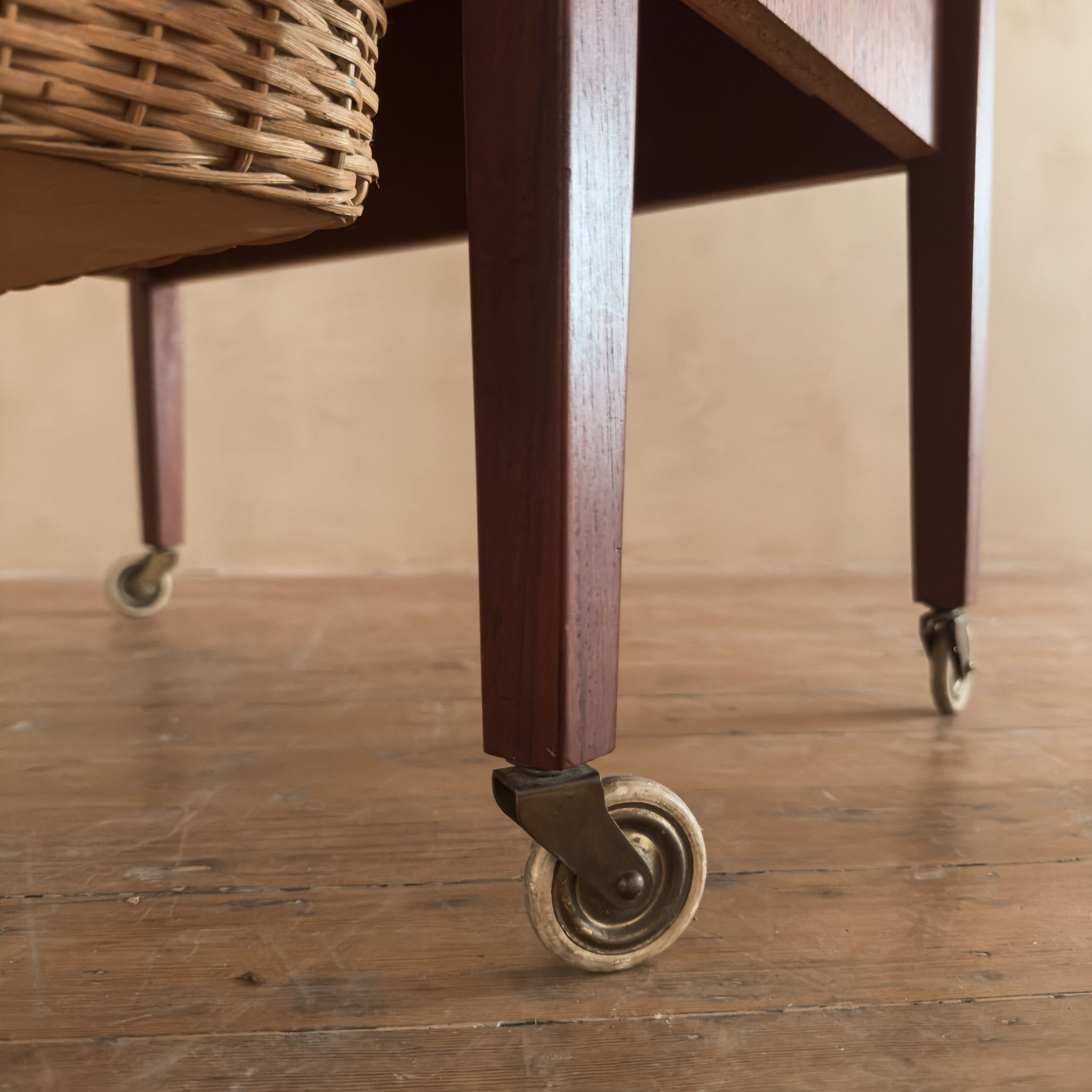 French Teak Chest with Woven Basket Drawer, 1960s