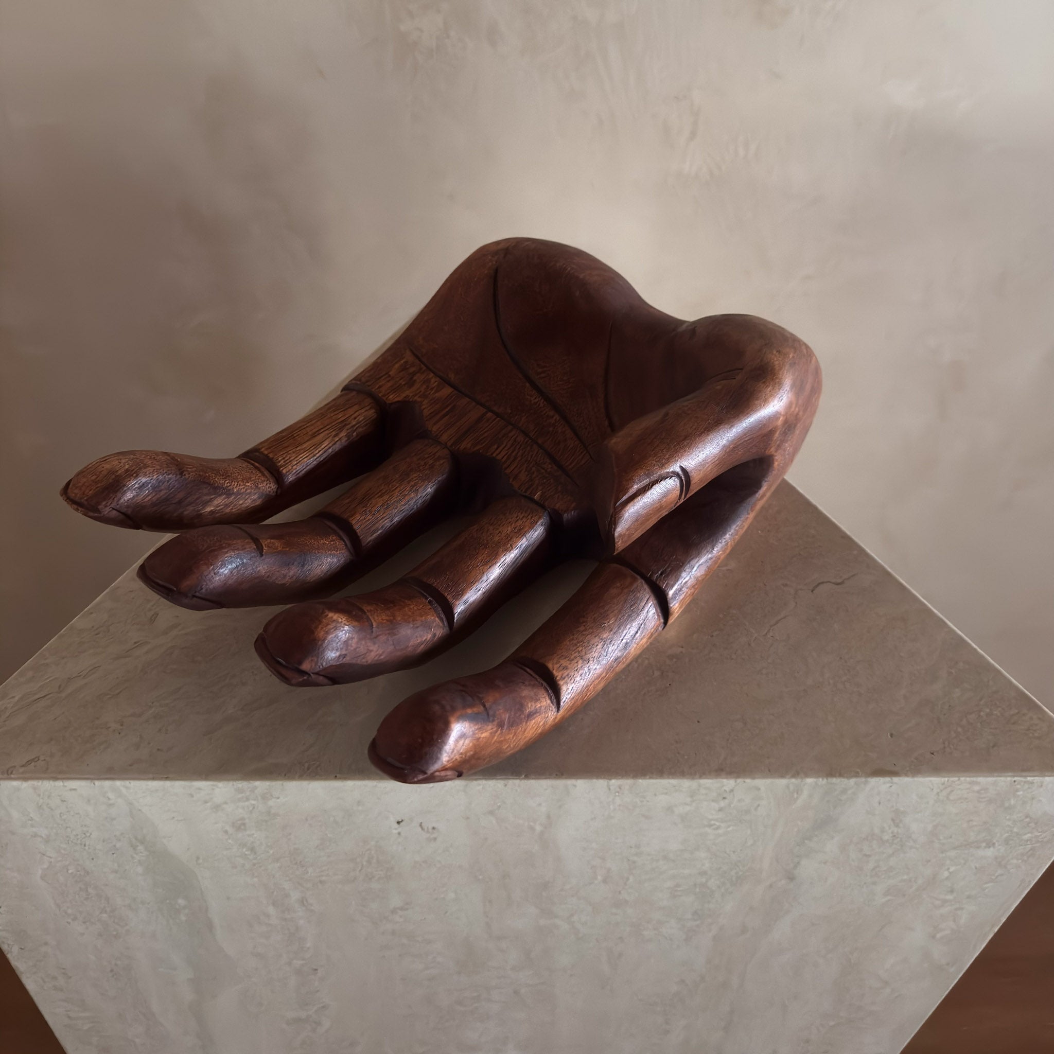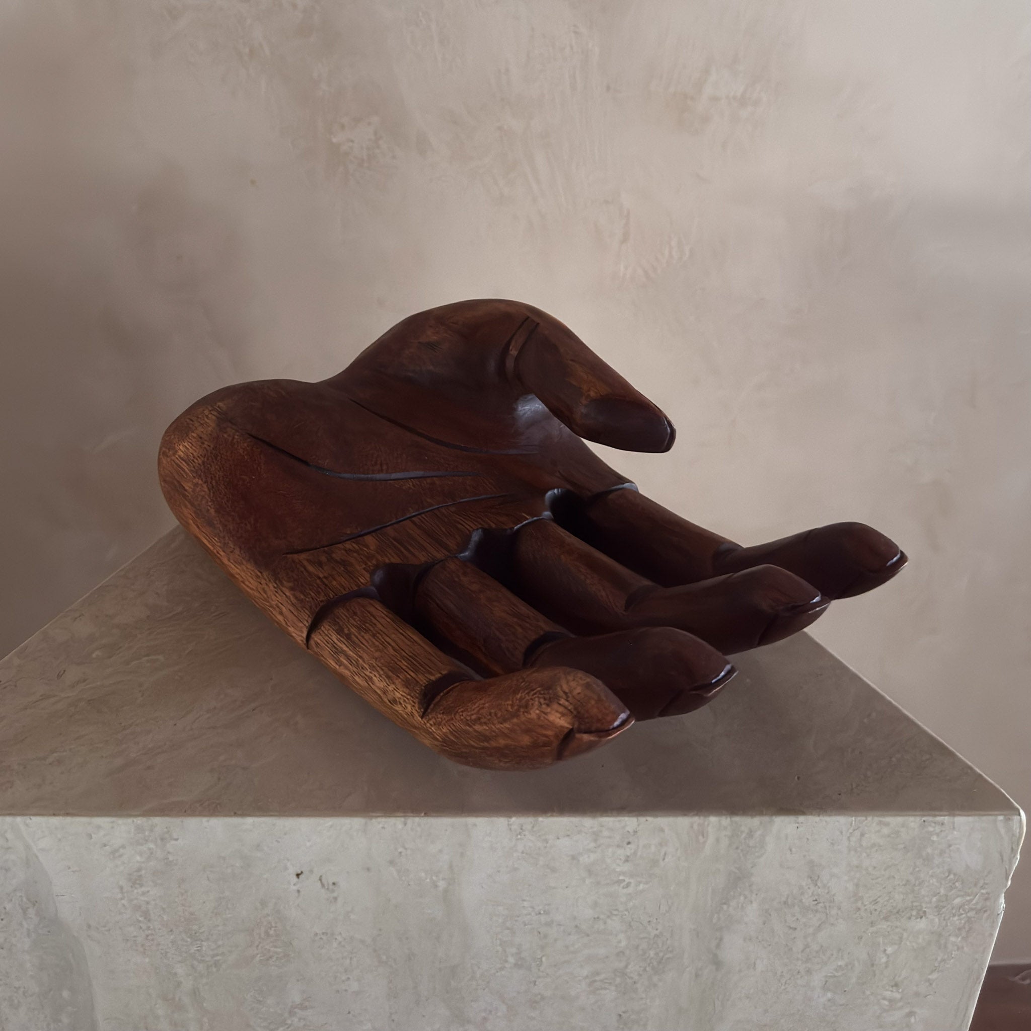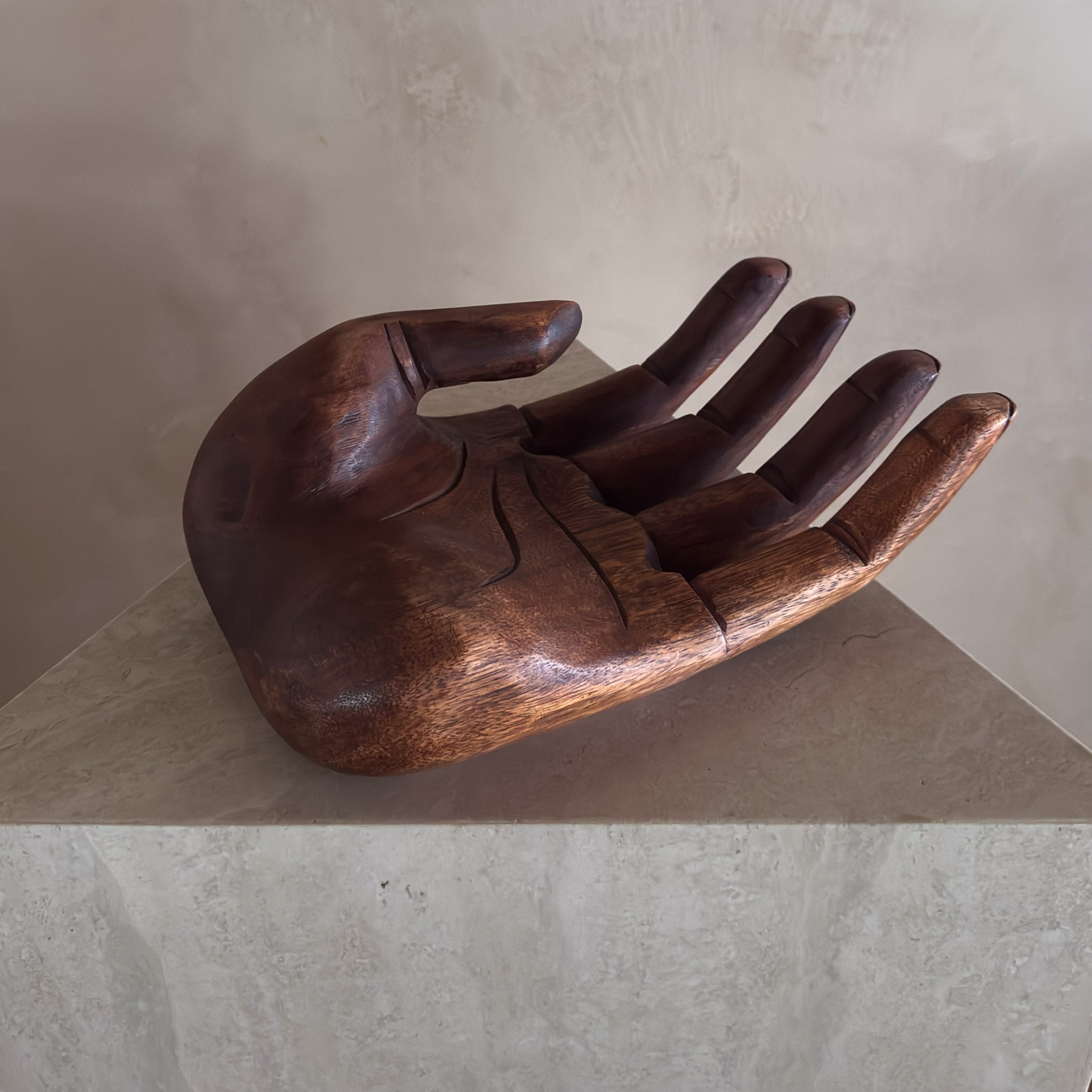 Large Wooden Open Palm Sculpture
