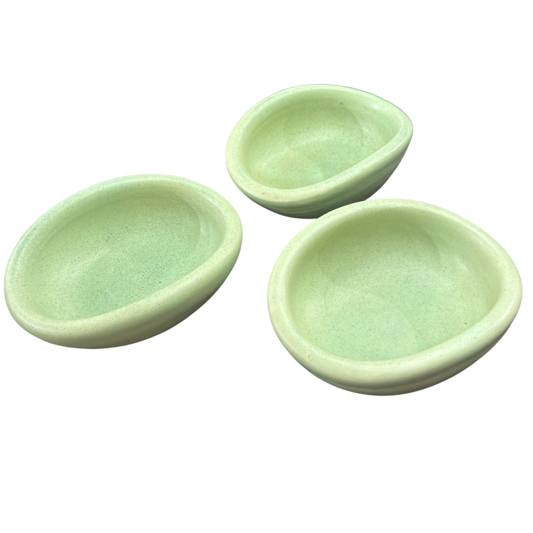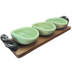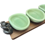 Trio of Celadon Ceramic Bowls with Wood Tray