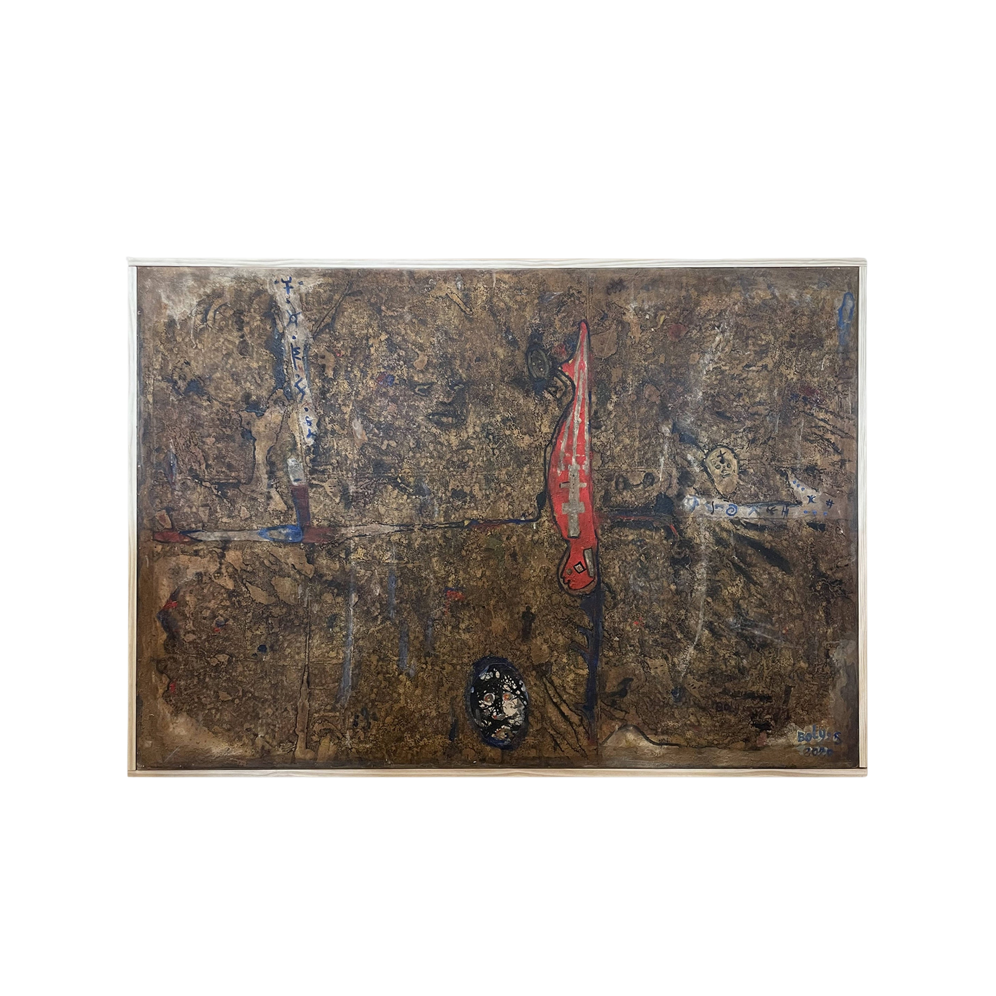 Acrylic, clay, and pigment on canvas.