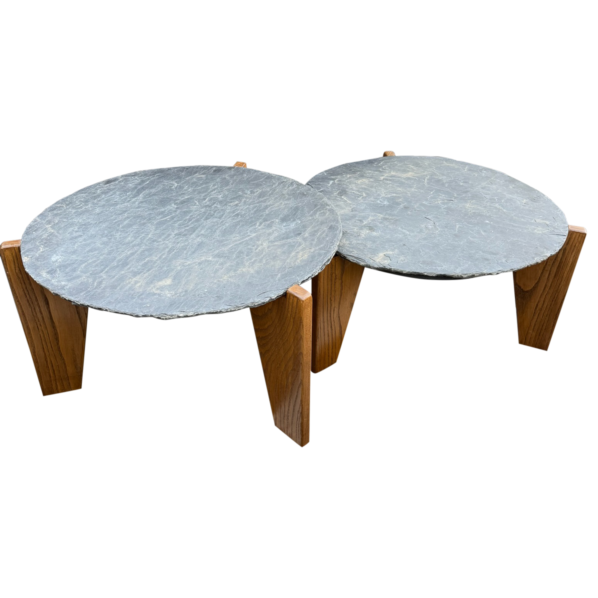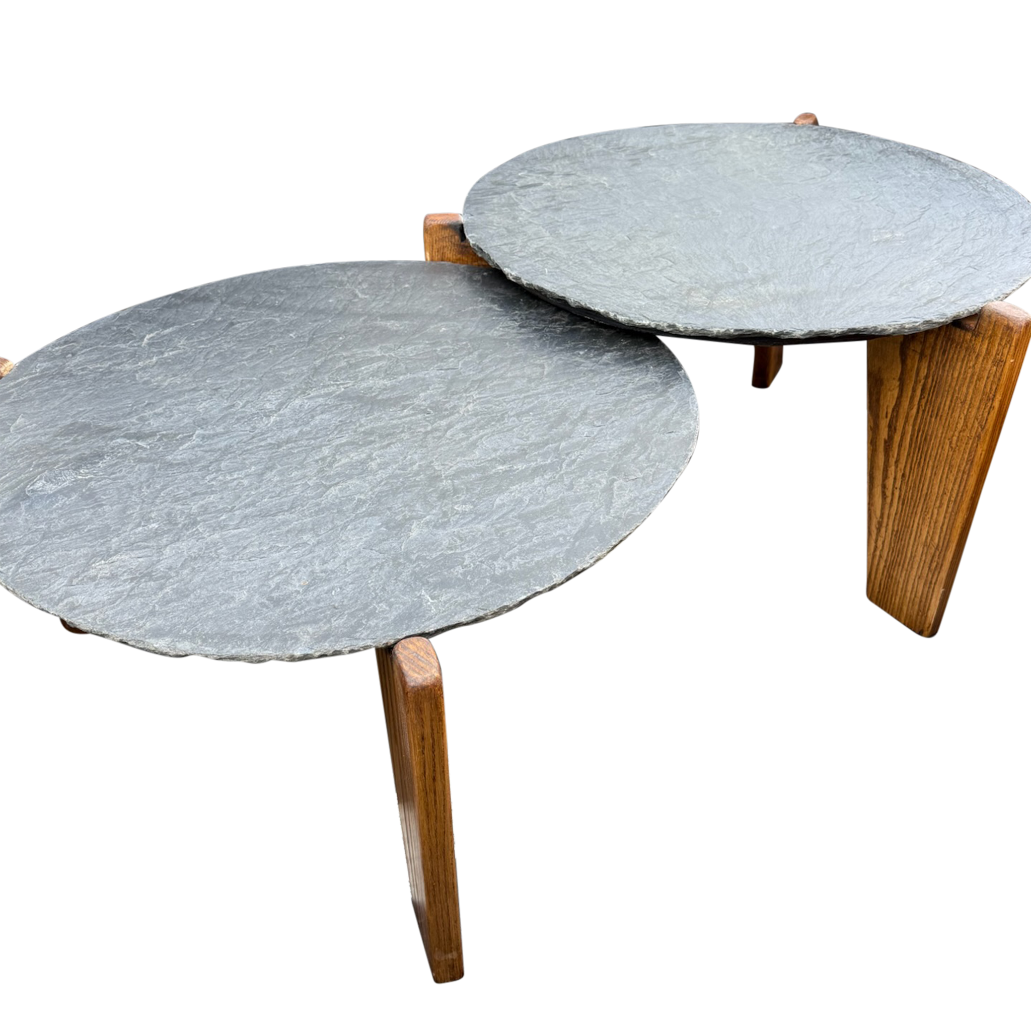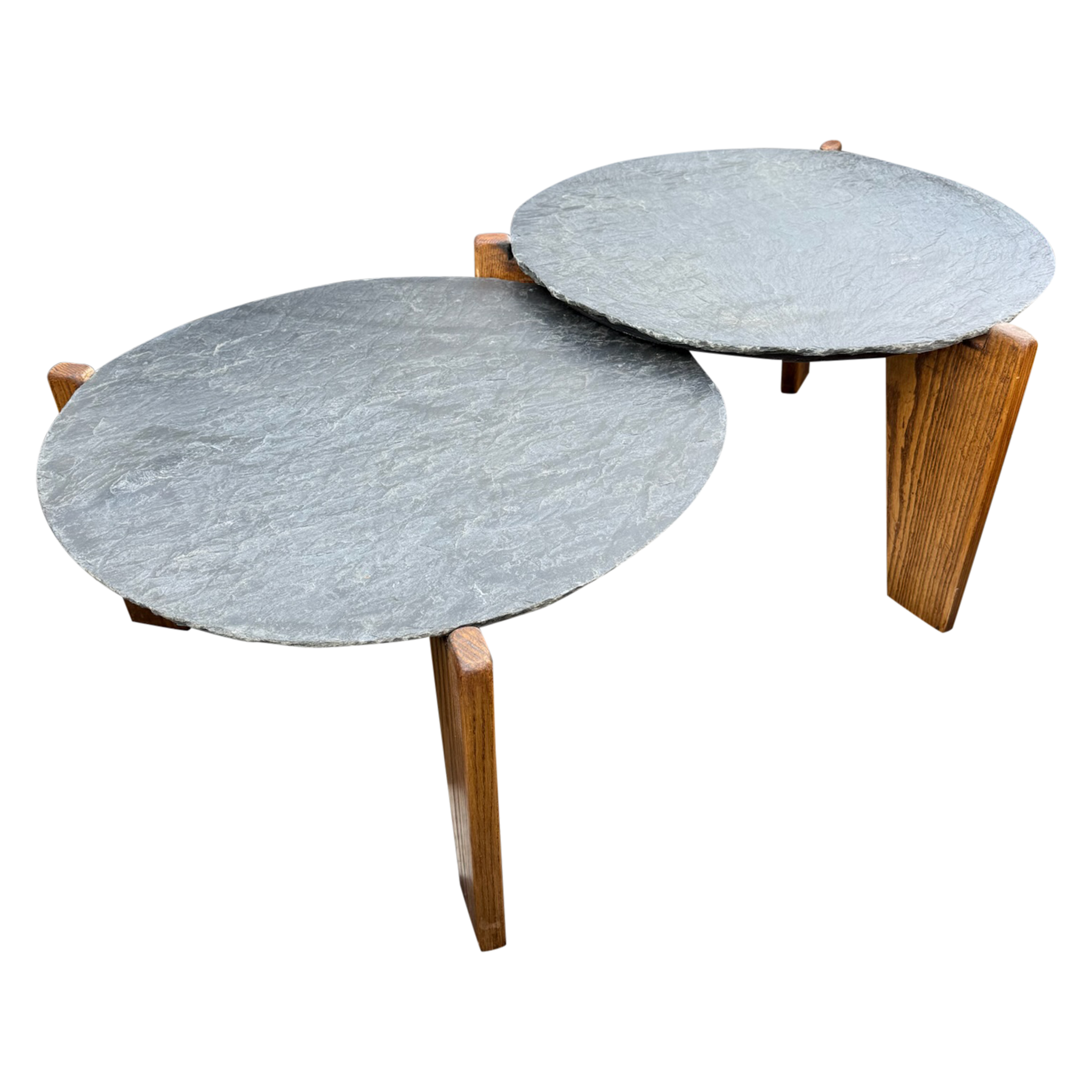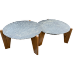 Pair of Slate and Oak Tables, France, 1970s