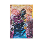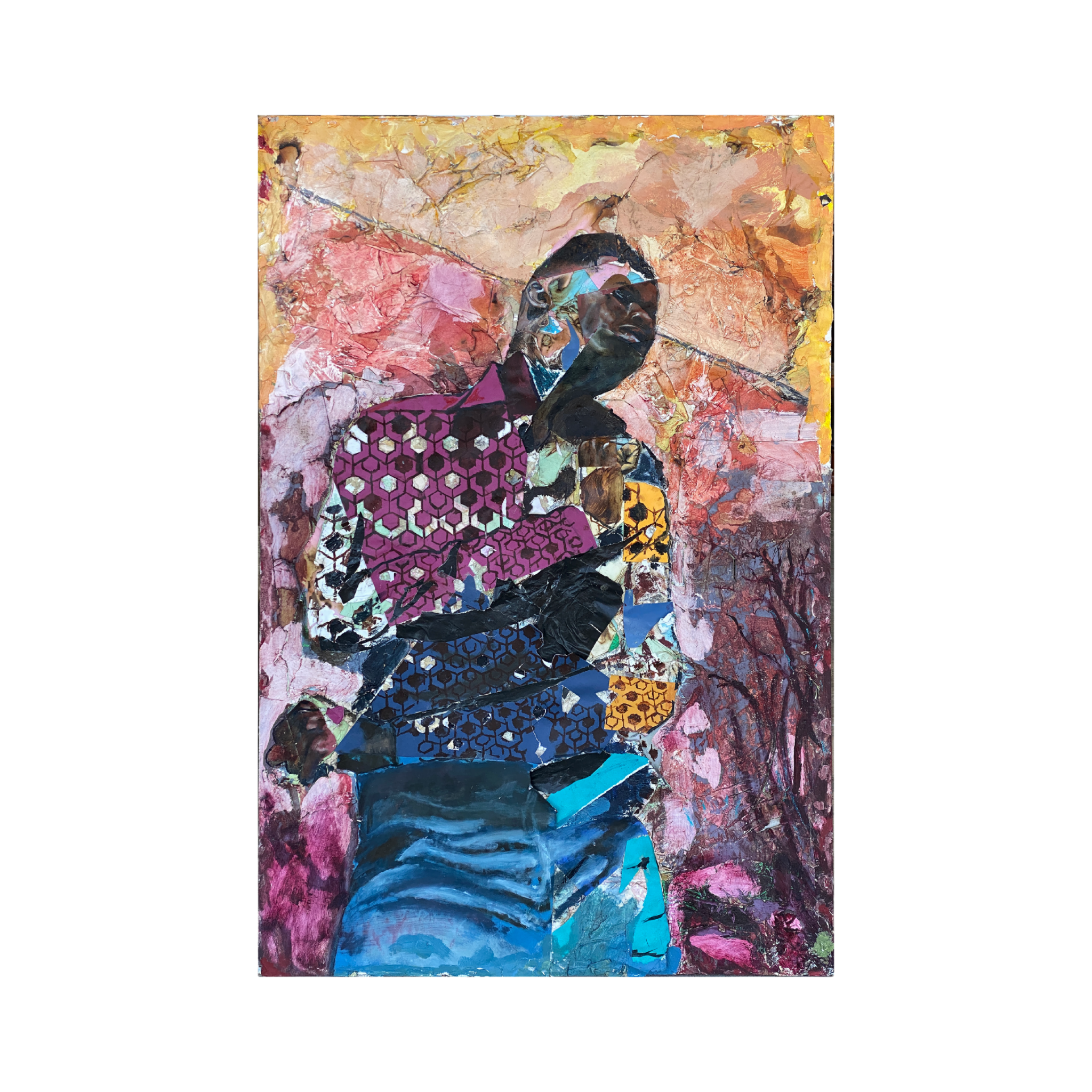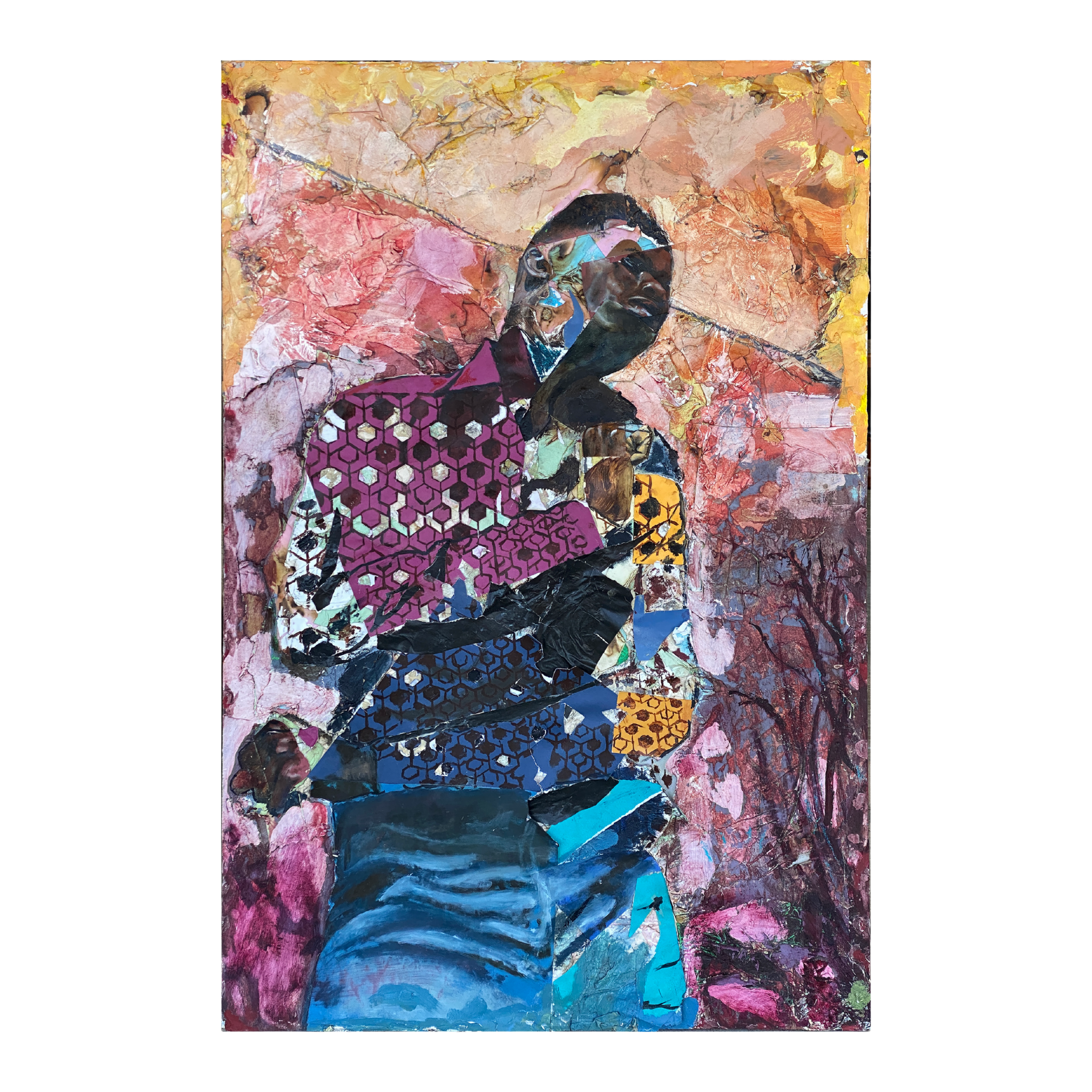 Oil, paper, mixed media on wood.