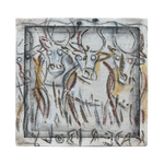 Clay, oil pastel, acrylic, pencil on canvas.