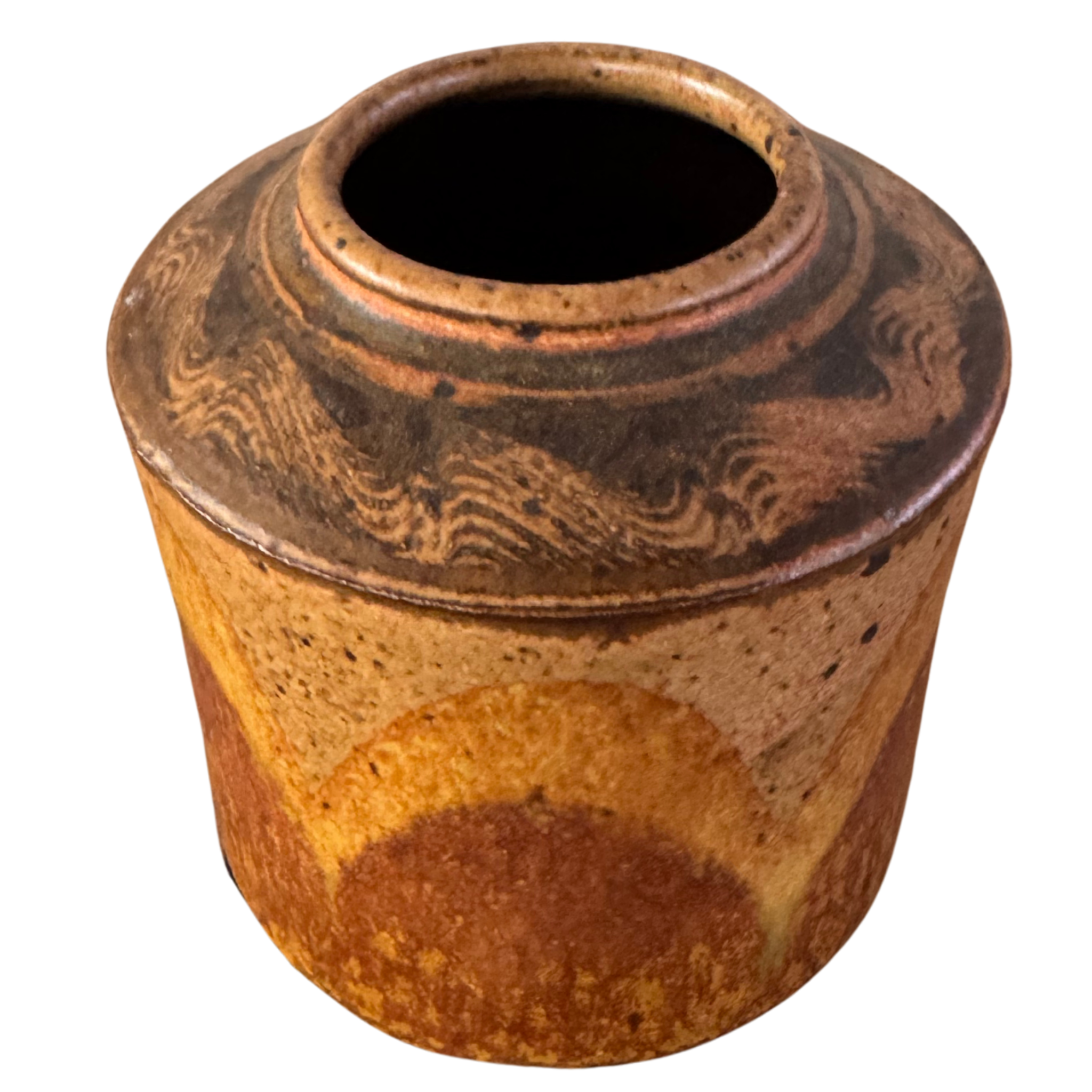 Studio Pottery Vessel with Wave Pattern Glaze
