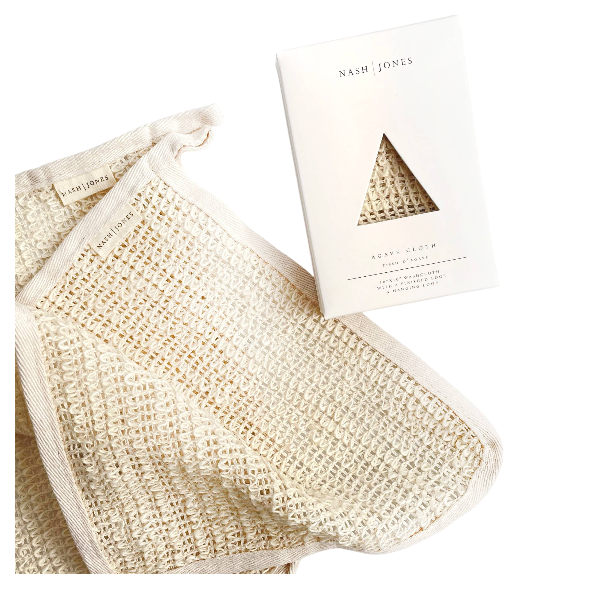 Our best selling Natural Agave Washcloth is woven from Agave Sisalana Cactus plant fibers and is amazing for gently exfoliating skin on both face and body. Soften cloth with warm water. Use with soap/water to invigorate and soften skin, expose fresh skin cells and help stimulate circulation for the growth of new cells. Machine washable, Air dry. Loop sewn on for easy hang drying. [re-shape when wet if necessary] Naturally possesses anti-microbial and mold resistant properties. Comes packaged inside a triple-thick luxurious super soft touch box with a gold foil logo and open touch window.