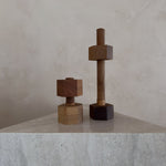 Pair of Turned Wood Threaded Block Objects