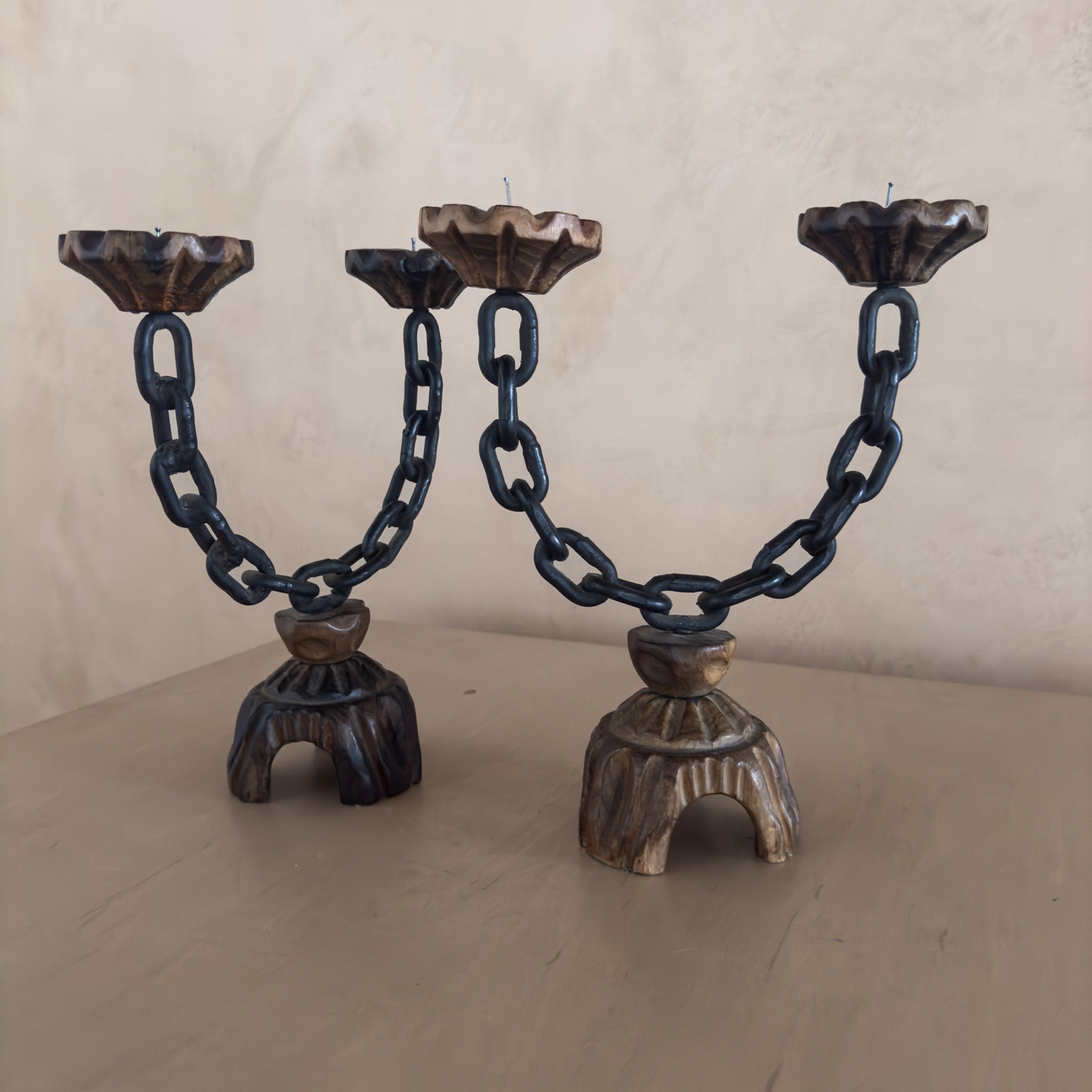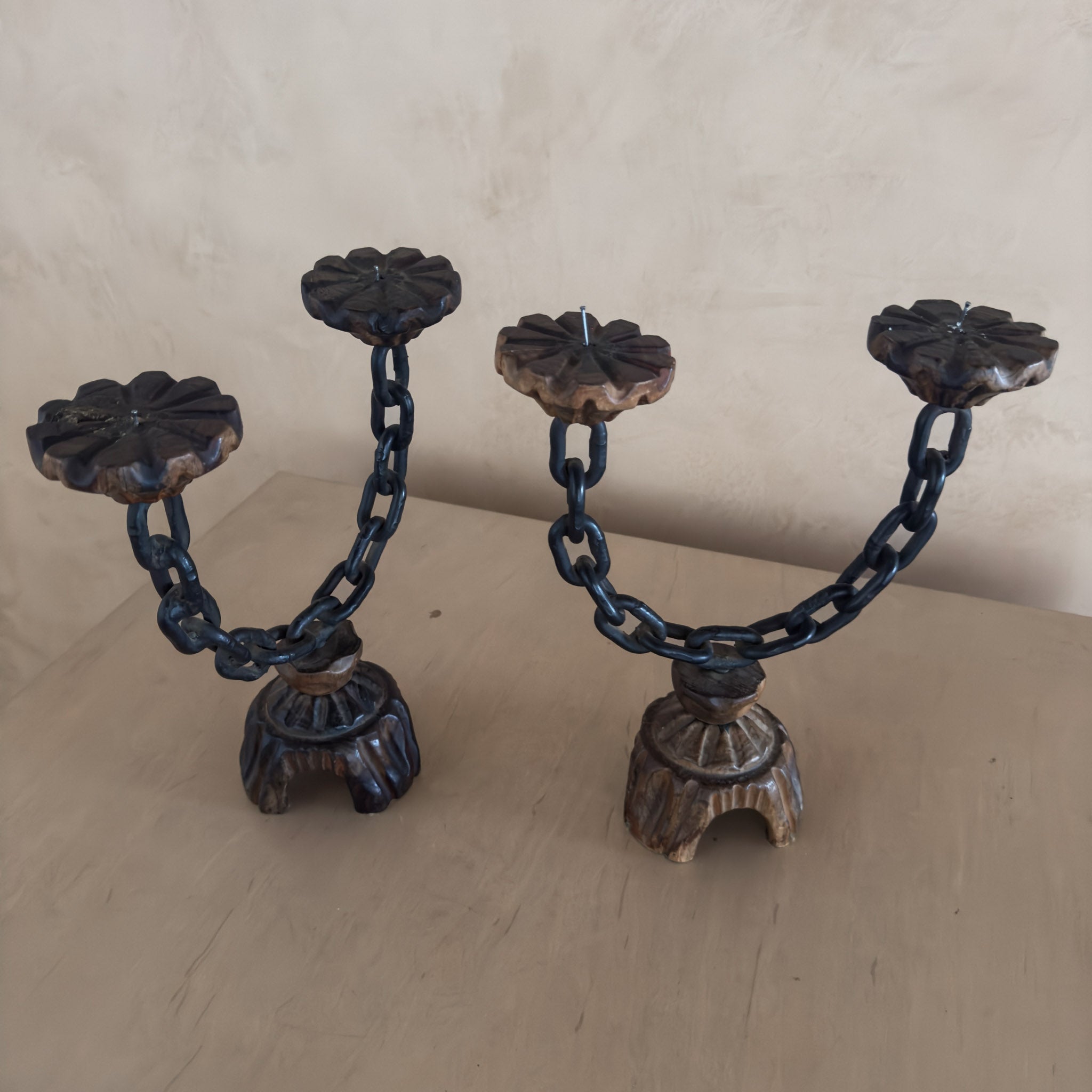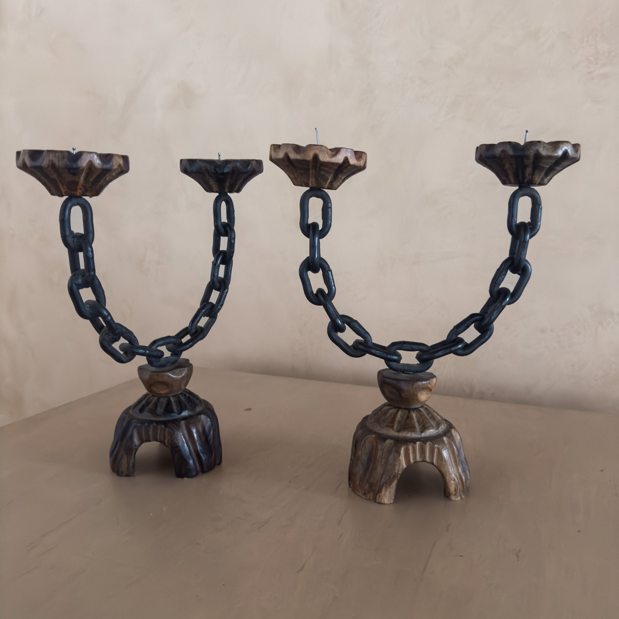 Pair of Vintage Spanish Chain Candle Holders