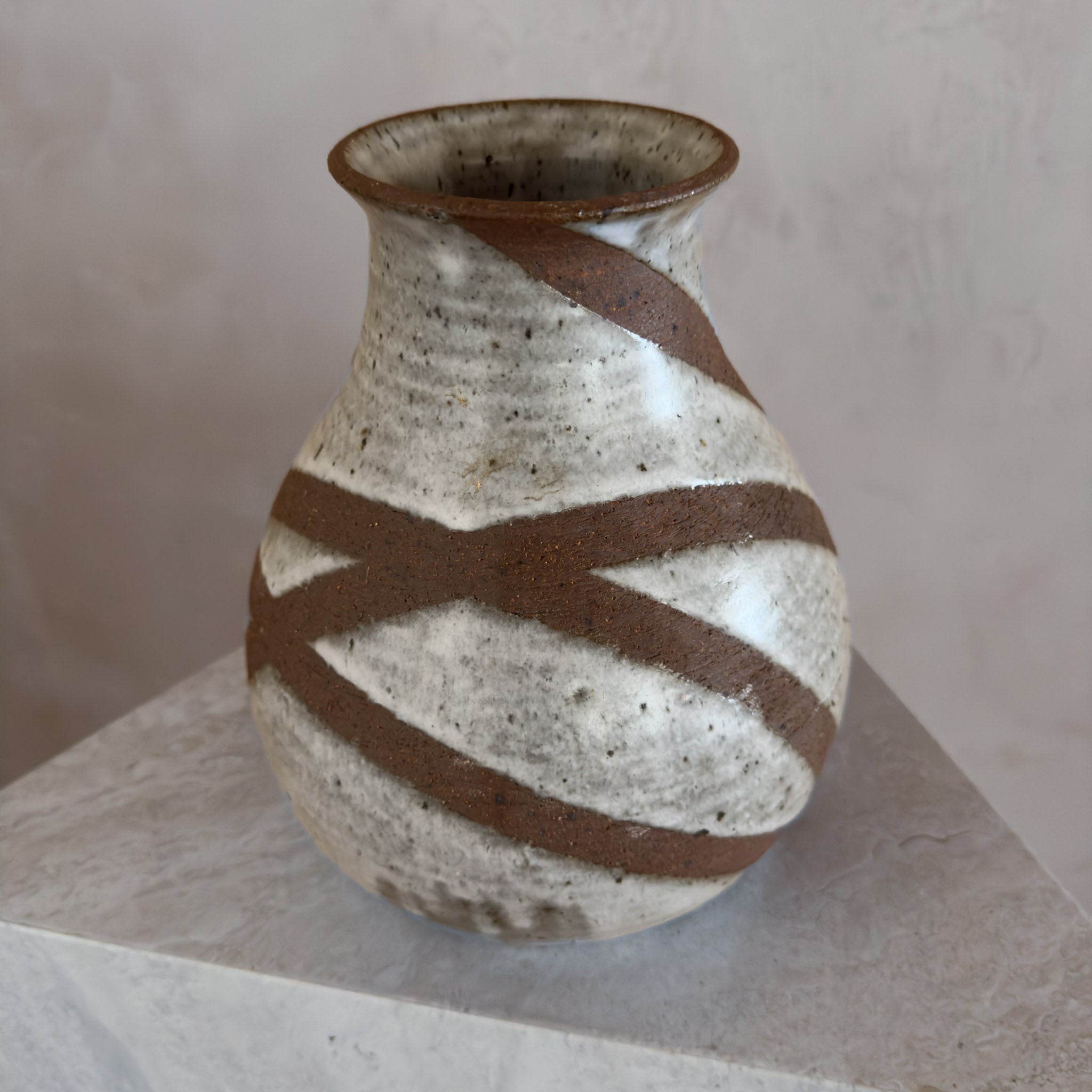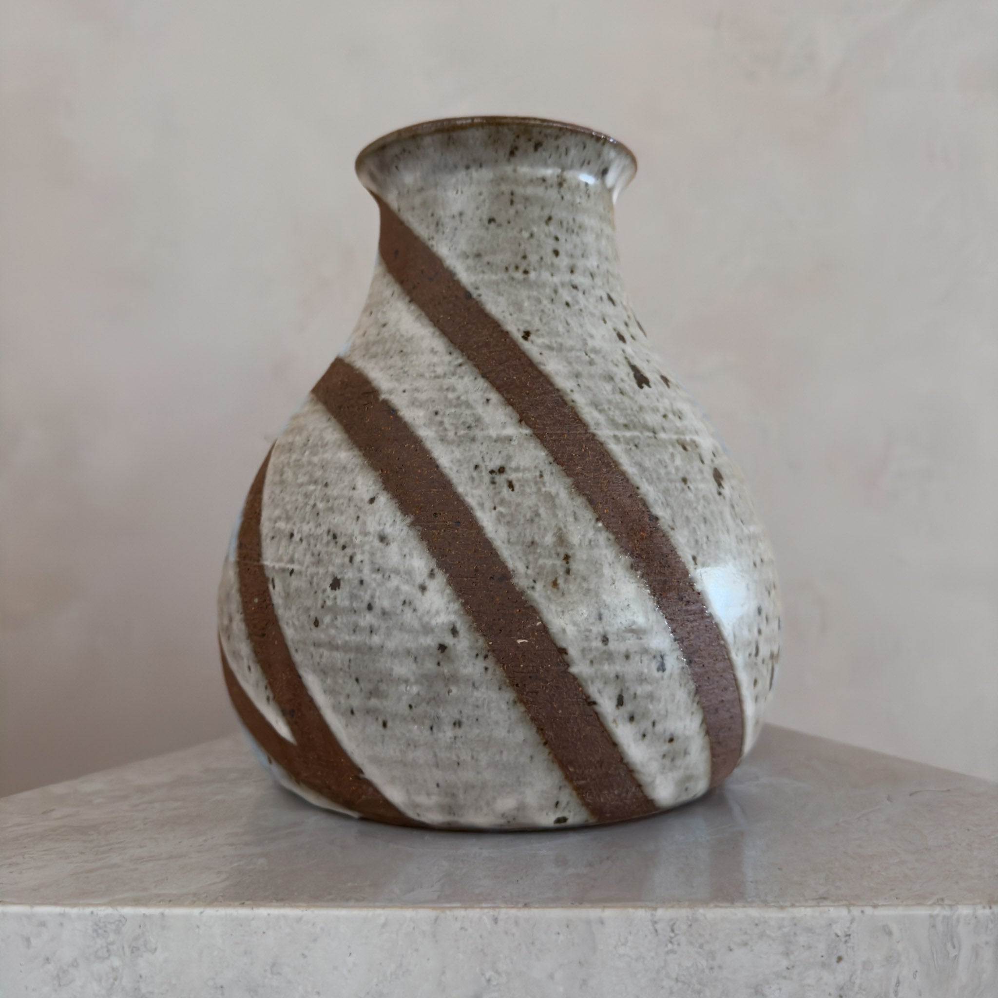 Speckled Glaze Spiral Band Studio Pottery Vase