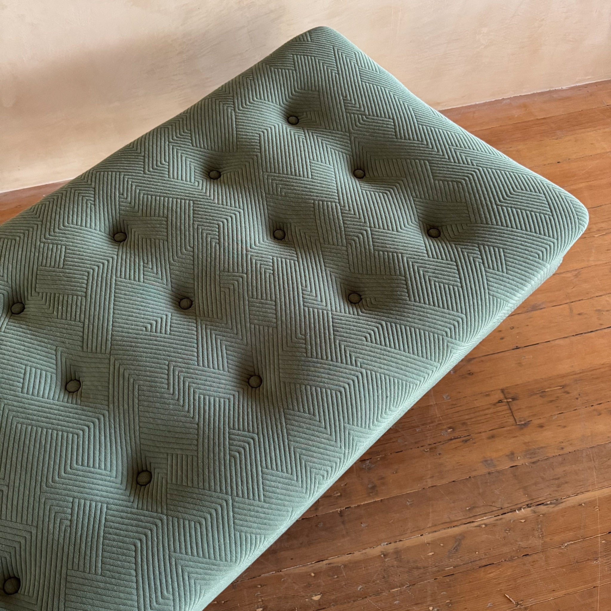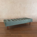 Tufted Sage Green Mid Century Daybed with Teak Legs